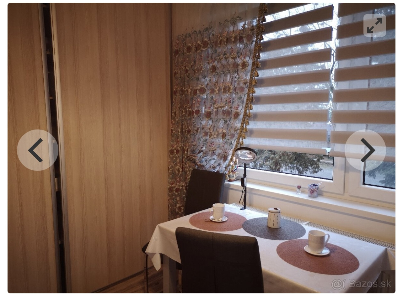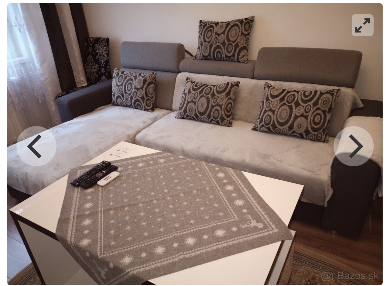 Zariadenie: byt sa prenajíma zariadený: manželská posteľ, gauč, TV, práčka, stolík a stoličky, kuchynská linka so spotrebičmi