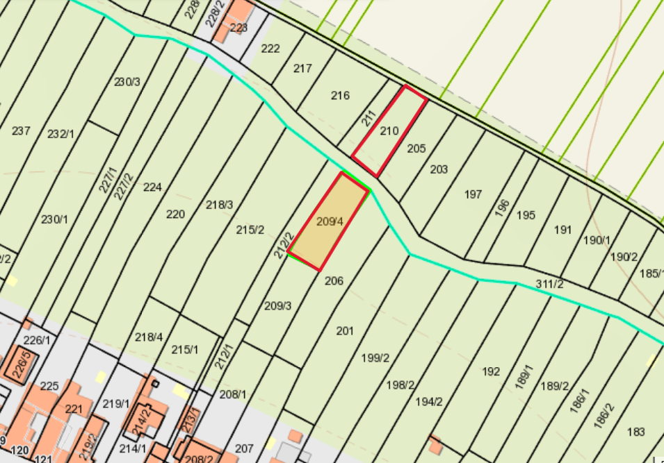 Pozemok má šírku približne 13 m, je rovinatý a situovaný v intraviláne obce. Prístup k nemu je zabezpečený z poľnej cesty. Parcelné čísla sú 209/4 a 210.