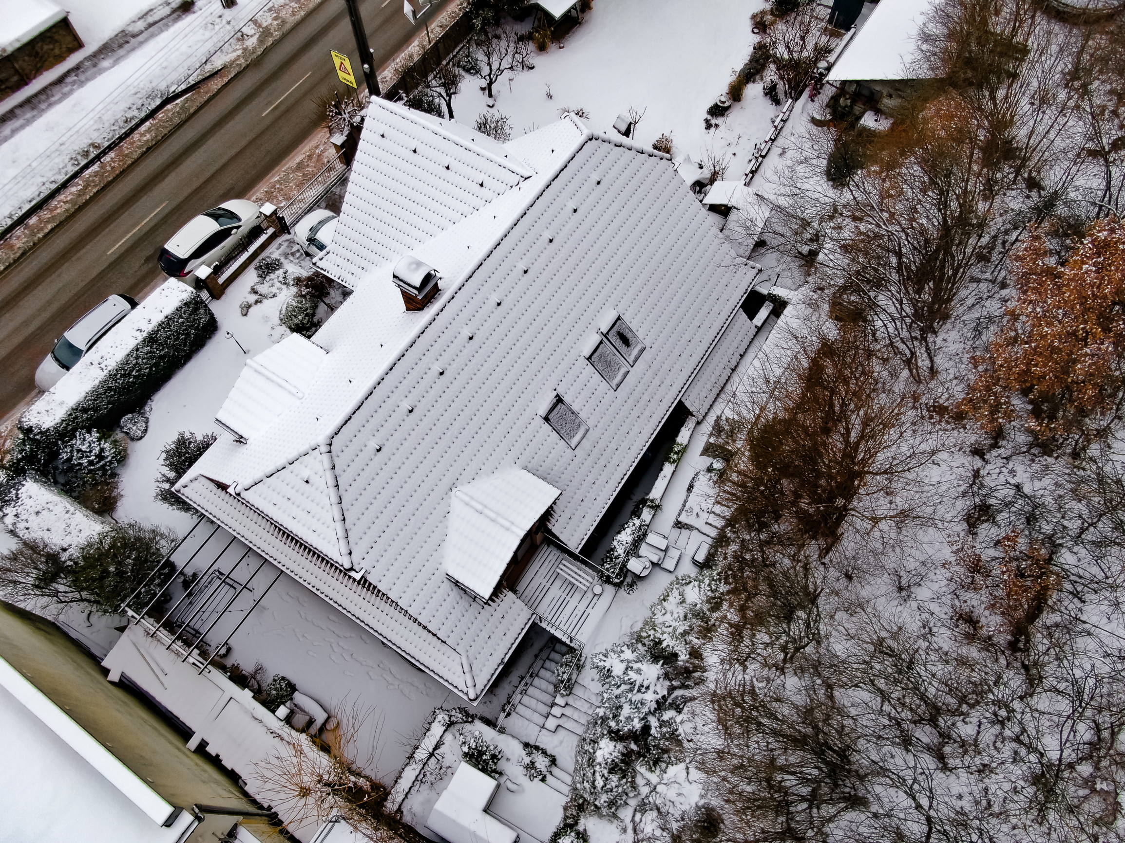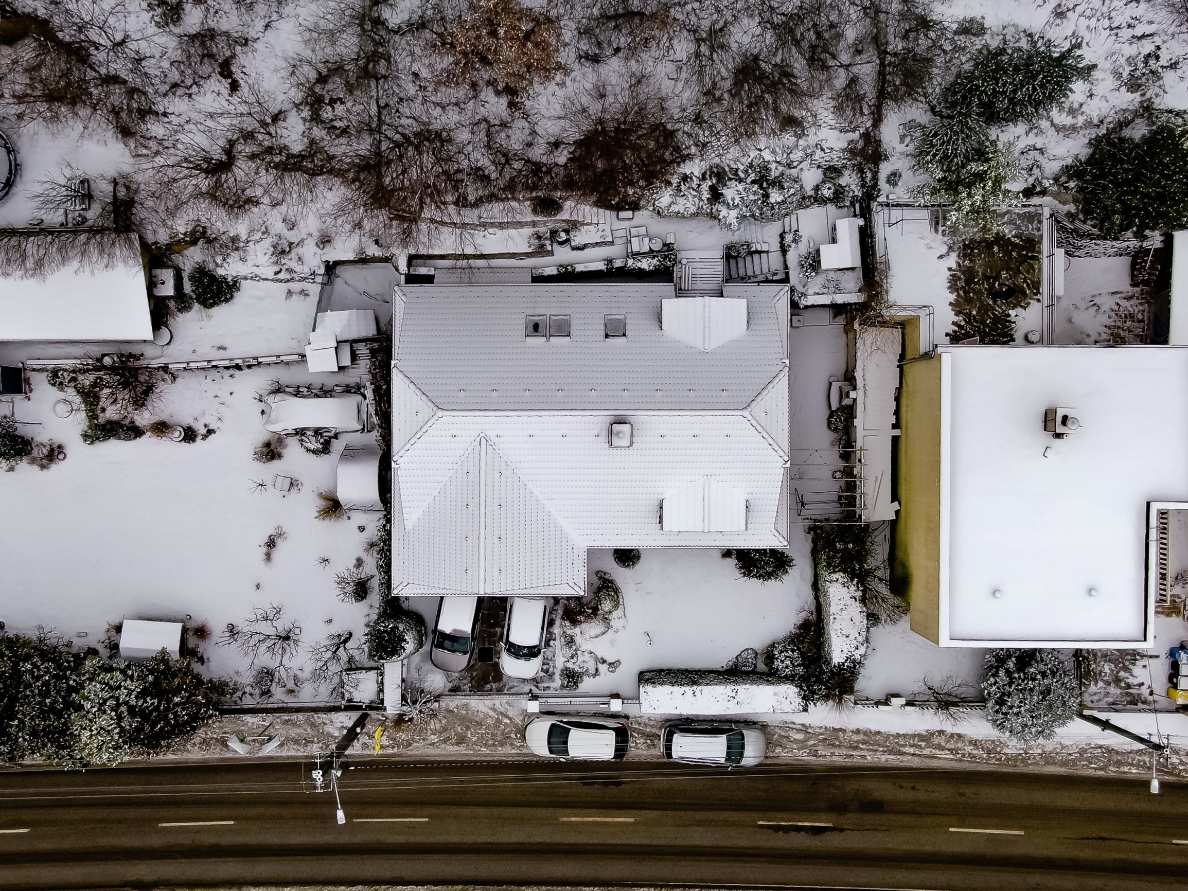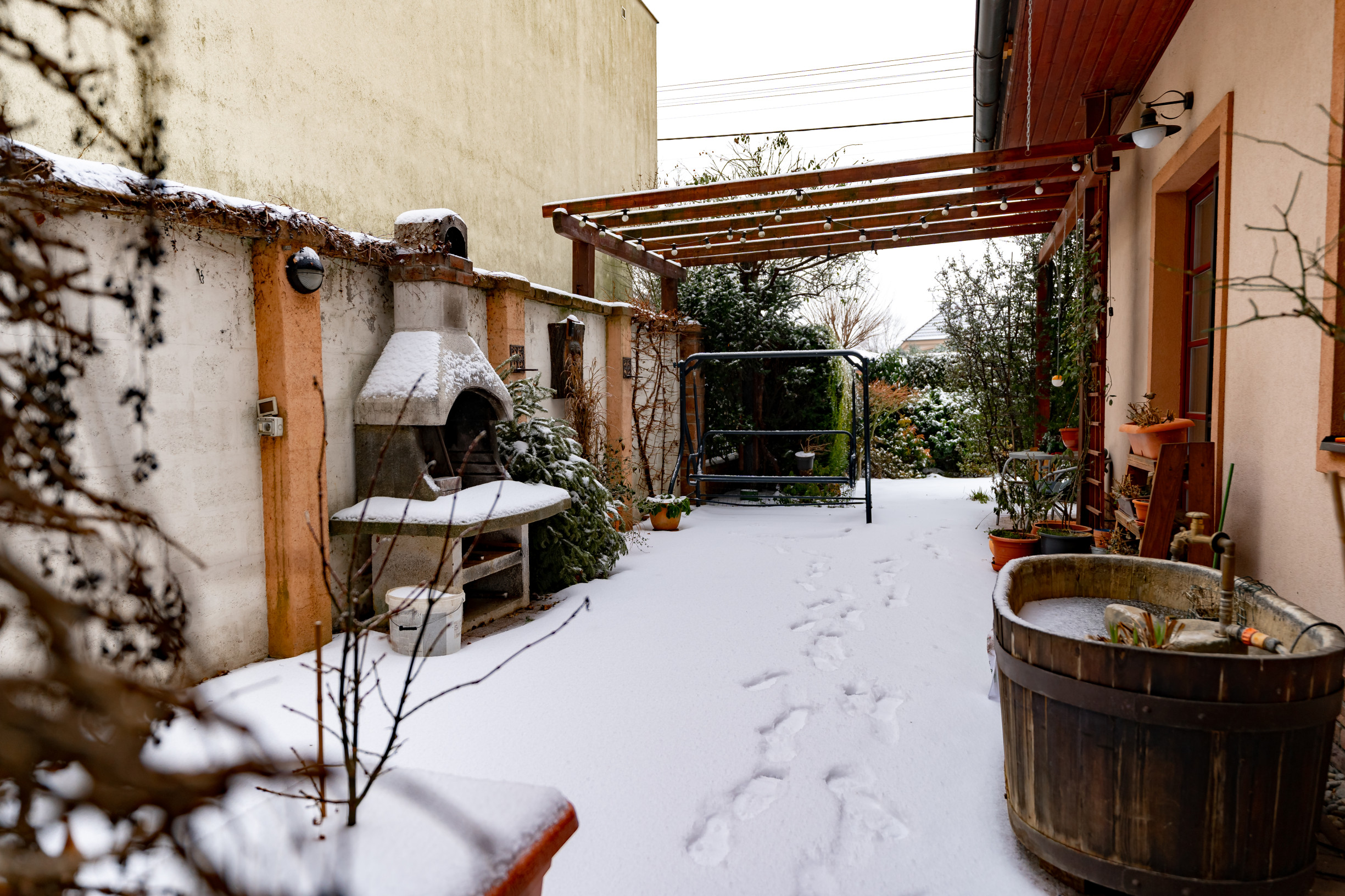 Pozemok je rovinatý v prednej časti a v zadnej časti kaskádovito upravený. Nachádza sa tu: