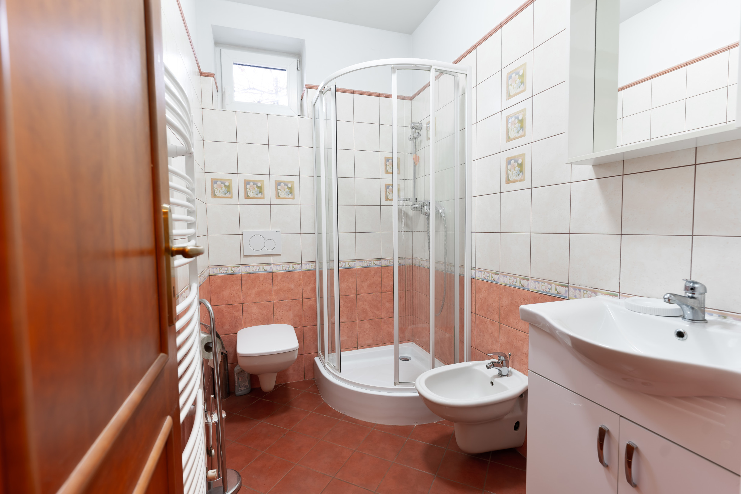 Na prízemí je položená keramická dlažba.