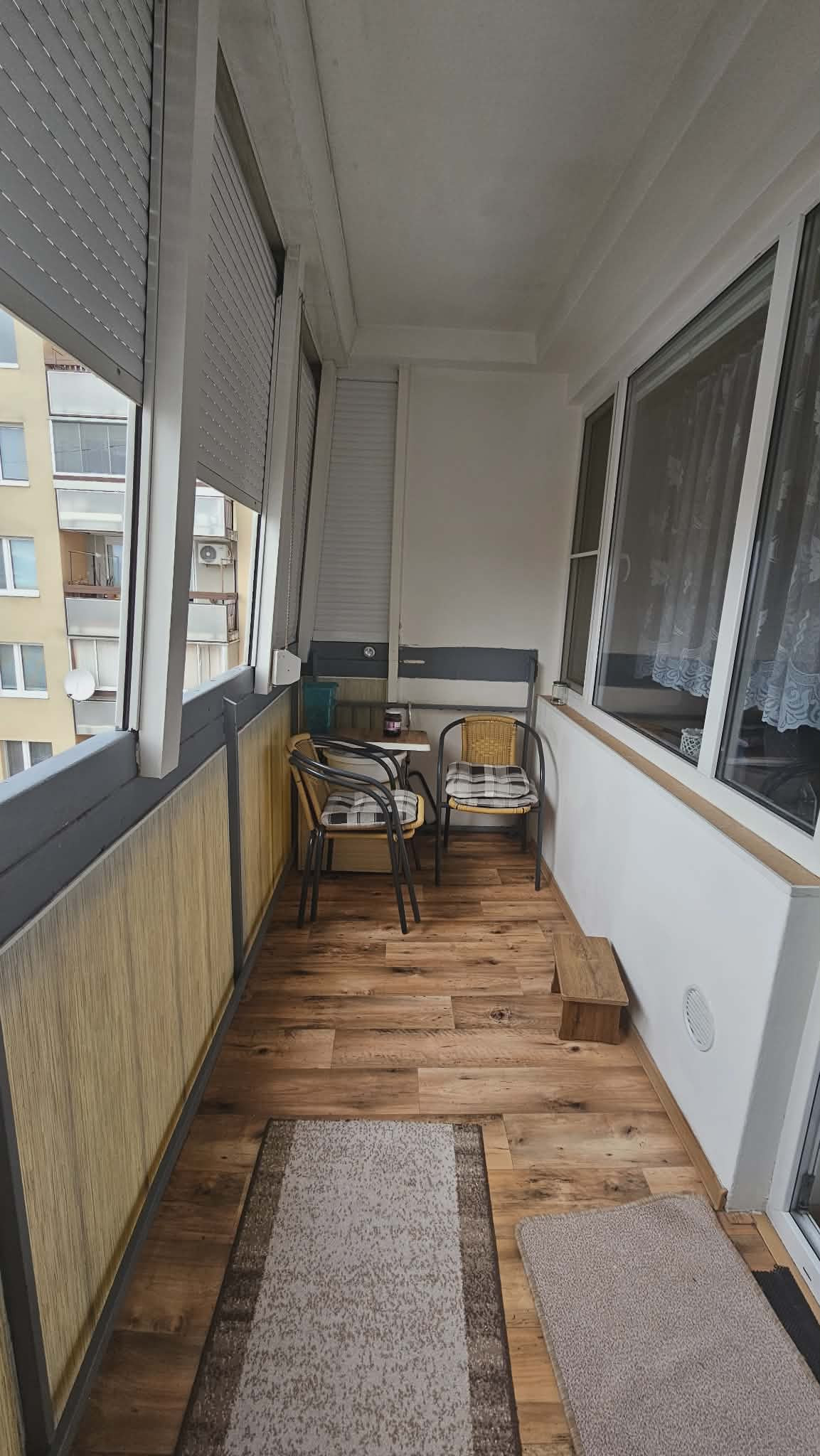 Veľkým bonusom bytu je priestranný balkón, kde si môžete vychutnať rannú kávu alebo večerný relax. K bytu patrí aj pivnica.