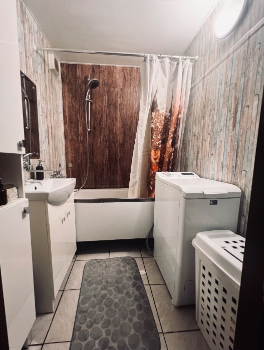 - kúpeľne s vaňou, práčkou a úložnými skrinkam a toalety, ktoré sú oddelené