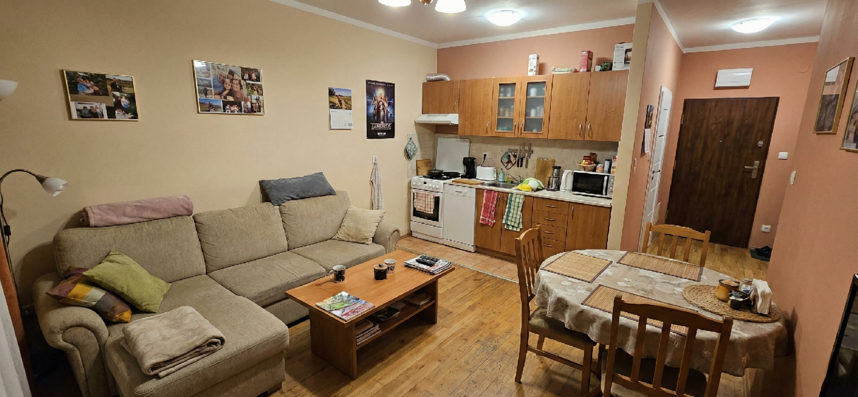 Byt pozostáva z obývacej izby prepojenej s kuchyňou, dvoch samostatných izieb, kúpeľne spojenej s WC a vstupnej chodby. Je udržiavaný, svetlý a vhodný na okamžité bývanie.