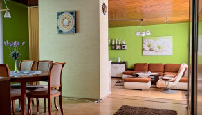 Dispozícia ponúka spolu 8 izieb, viacero obytných miestností, kúpeľní a úložných priestorov, vďaka čomu poskytuje komfortné bývanie aj pre väčšiu rodinu. Dom má suterén s garážou, technickými a skladovými miestnosťami, ktoré výrazne zvyšujú jeho praktickú hodnotu.