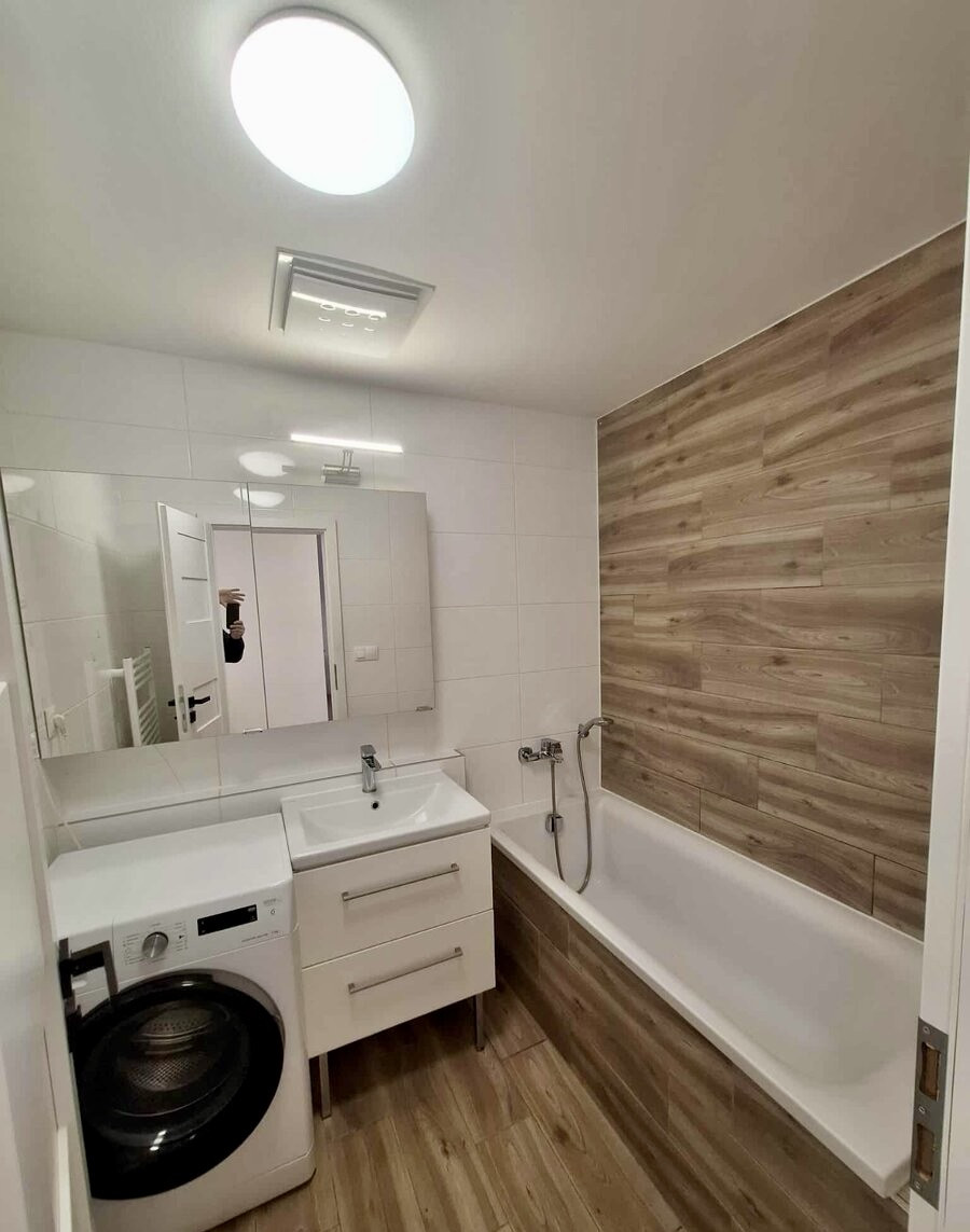 chladnička s mrazničkou, mikrovlnná rúra, indukčná varná doska s rúrou,práčka, jedálensky stôl, stoličky a všetko zariadenie ako na fotkách.