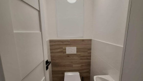 Pozostáva zo vstupnej chodby, kuchyne s obývačkou, samostatnej spálne so vstavanou skriňou, kúpeľne, samostatného WC, pivničnej kobky a balkónu.