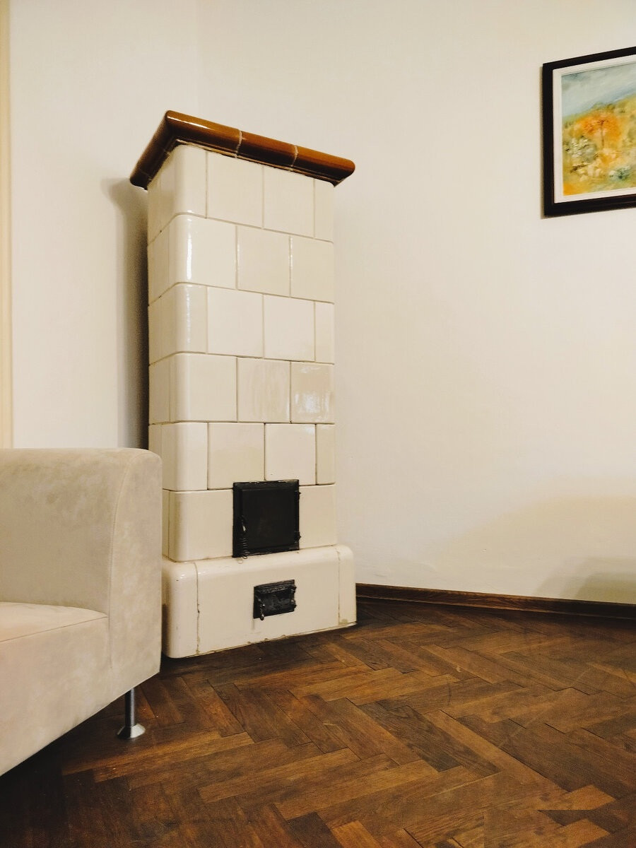Dve historické keramické pece tu nie sú len dekoráciou. V zime naplnia dom mäkkým, sálavým teplom a vytvoria atmosféru, ktorú žiadne moderné kúrenie nenahradí. A pritom – pohodlie máte na dosah jedného kliknutia vďaka modernému kotlu s diaľkovým ovládaním.