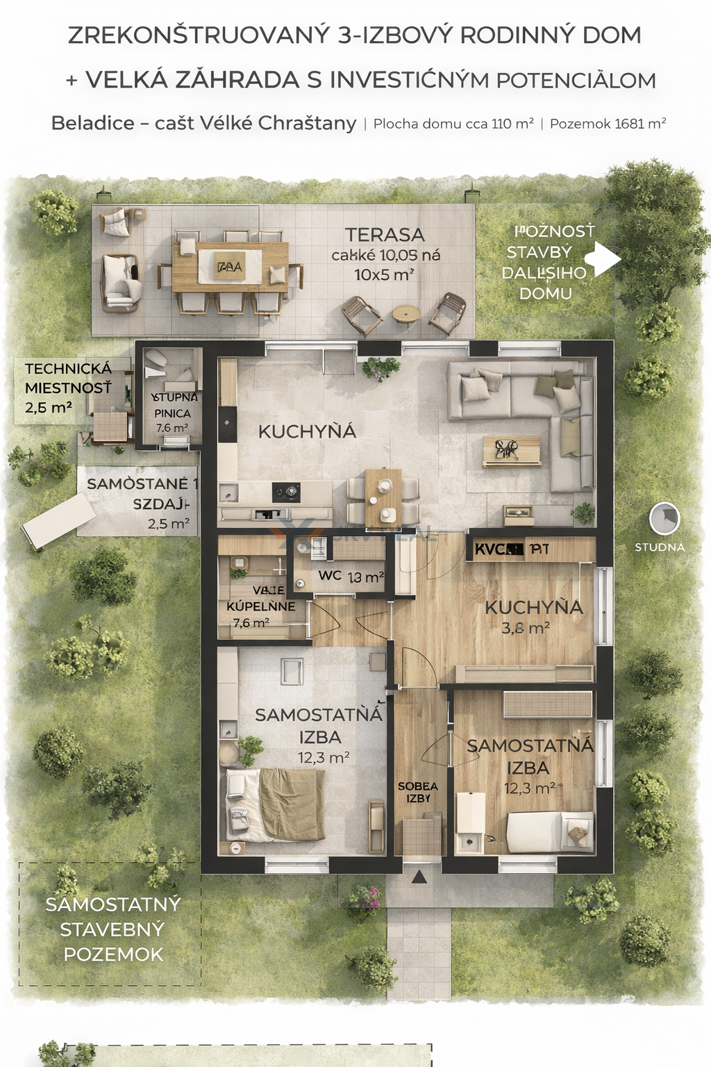 Beladice – časť Veľké Chrašťany | 1681 m² | ihneď k nasťahovaniu