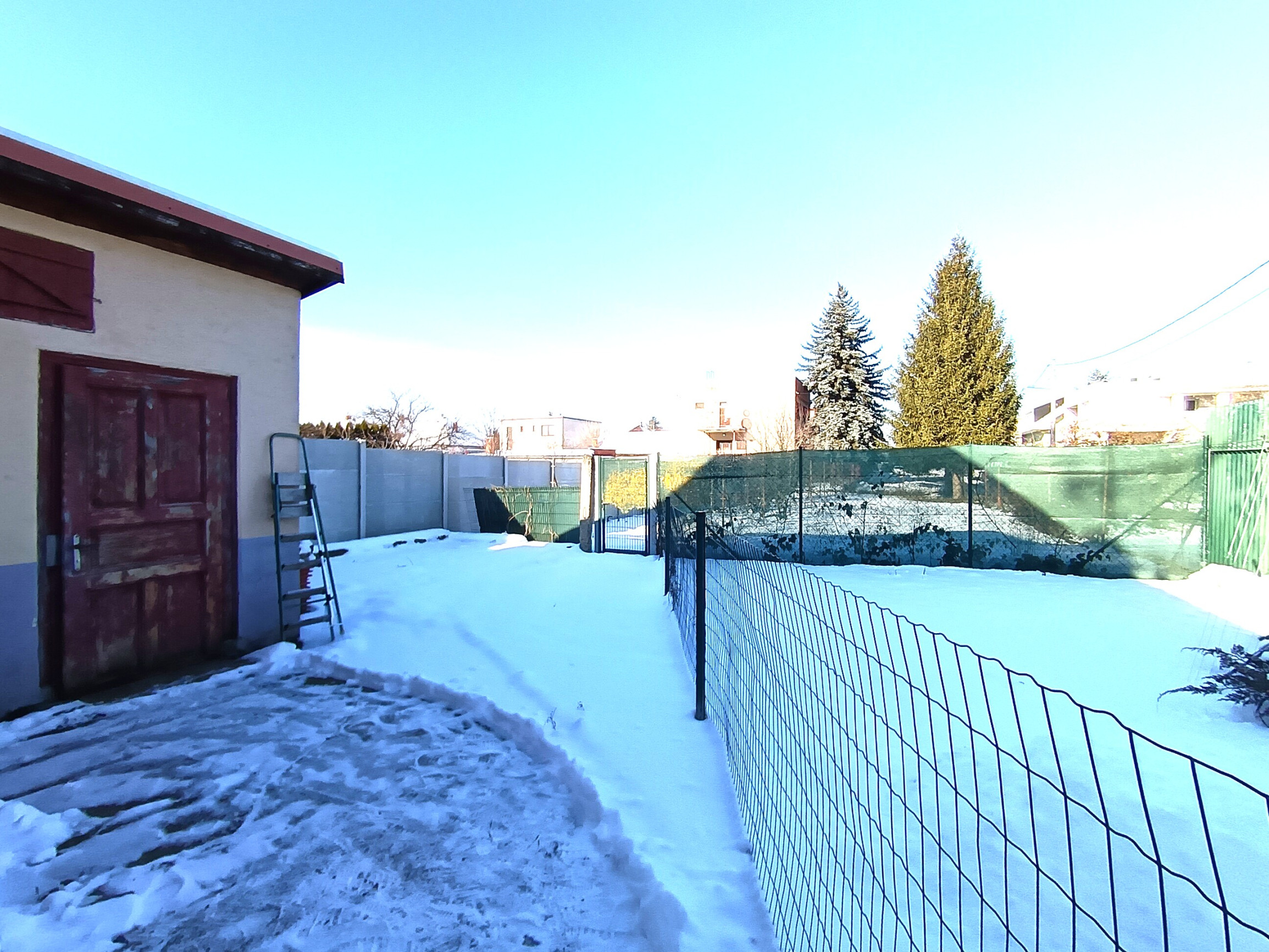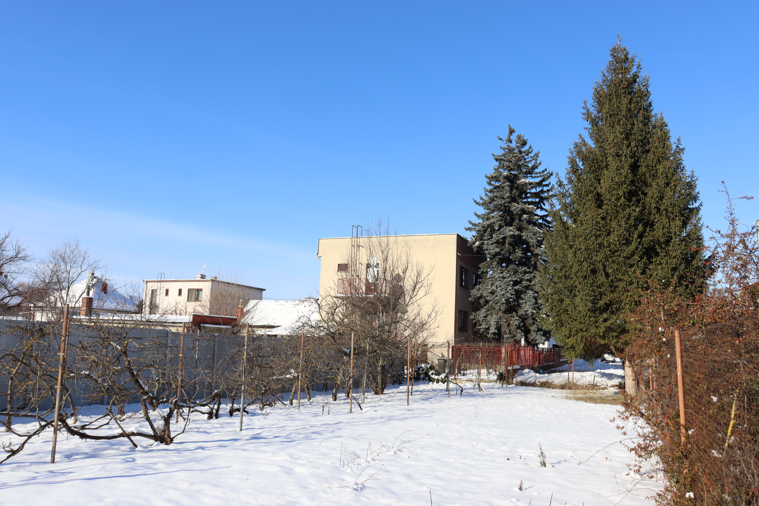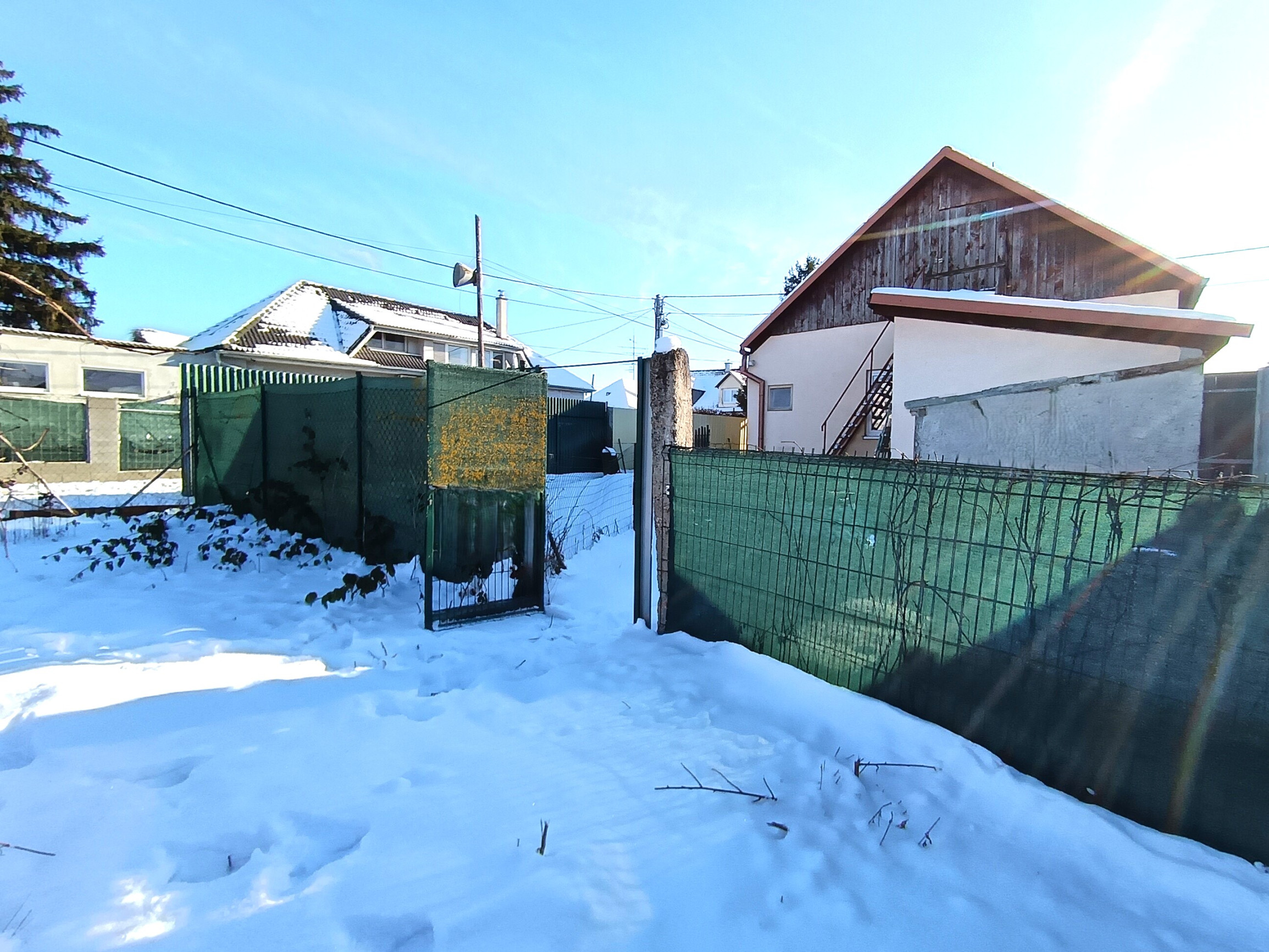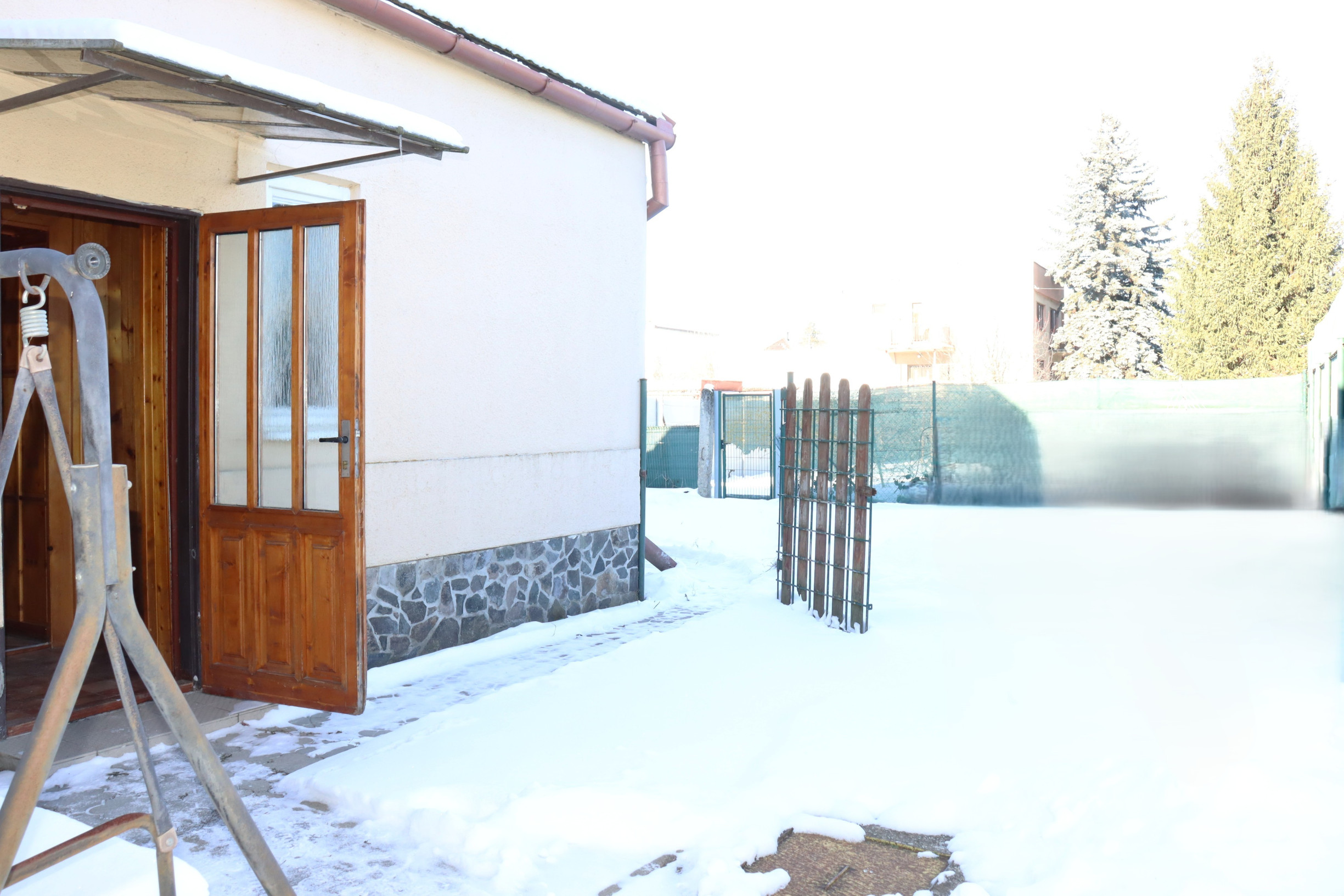 Záhrada je veľkorysá a slnečná, s impozantnou vzrastlou jedličkou, ktorá okamžite upúta pozornosť a dodáva priestoru jedinečnú atmosféru. Nachádza sa tu aj menší vinič, ideálny na vlastnú úrodu. Tento priestor je perfektný pre rodinu, ktorá túži po pokojnom spojení s prírodou, ale zároveň ponúka potenciál na podnikanie alebo kreatívne využitie, či už ako vonkajší priestor, dielňa alebo iná aktivita.