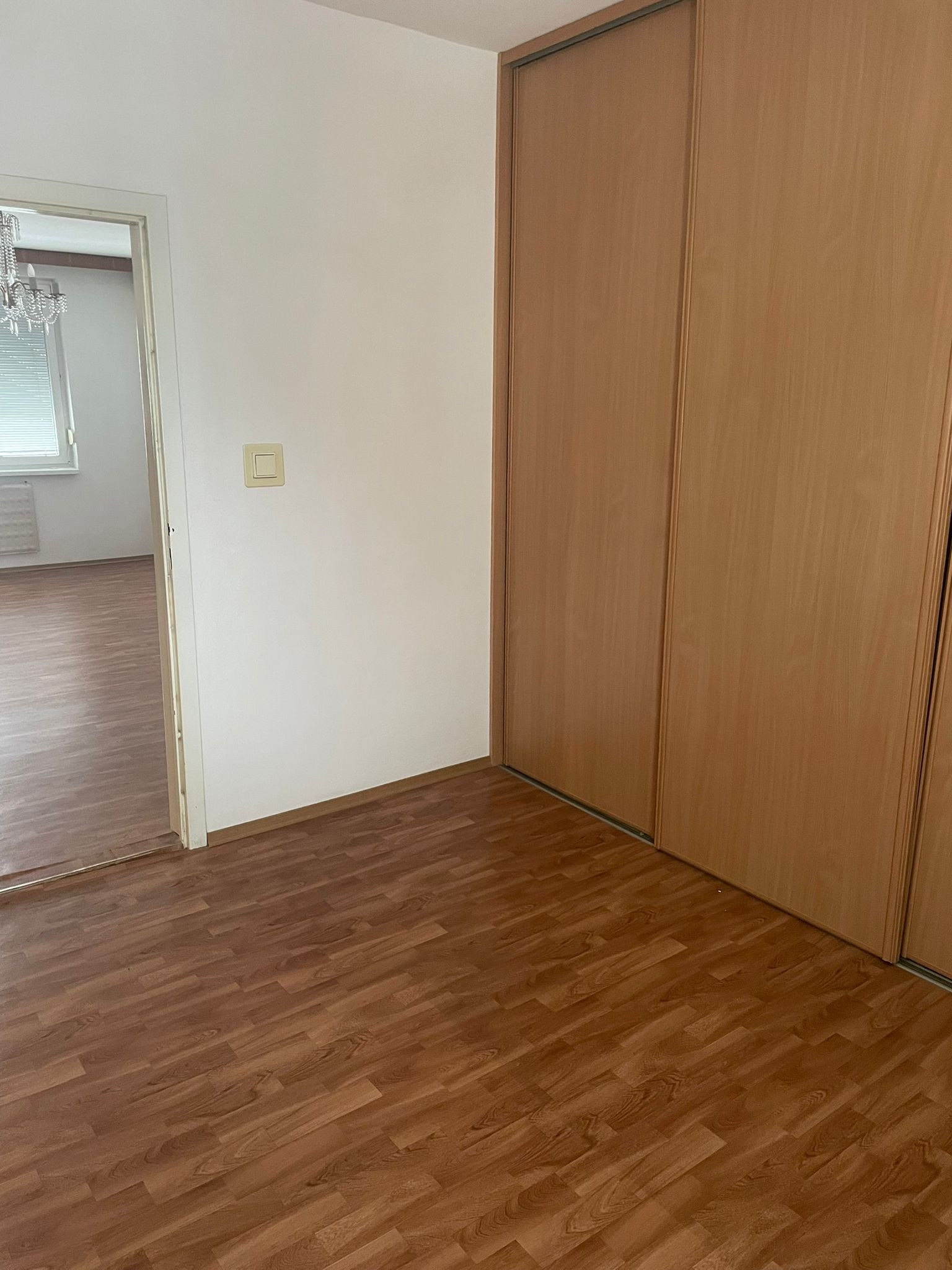 Ďalej vás byt zavedie do priestrannej izby, z ktorej sa vchádza do ďalšej samostatnej izby – ideálne riešenie pre rodinu aj pre tých, ktorí majú radi vlastný priestor.