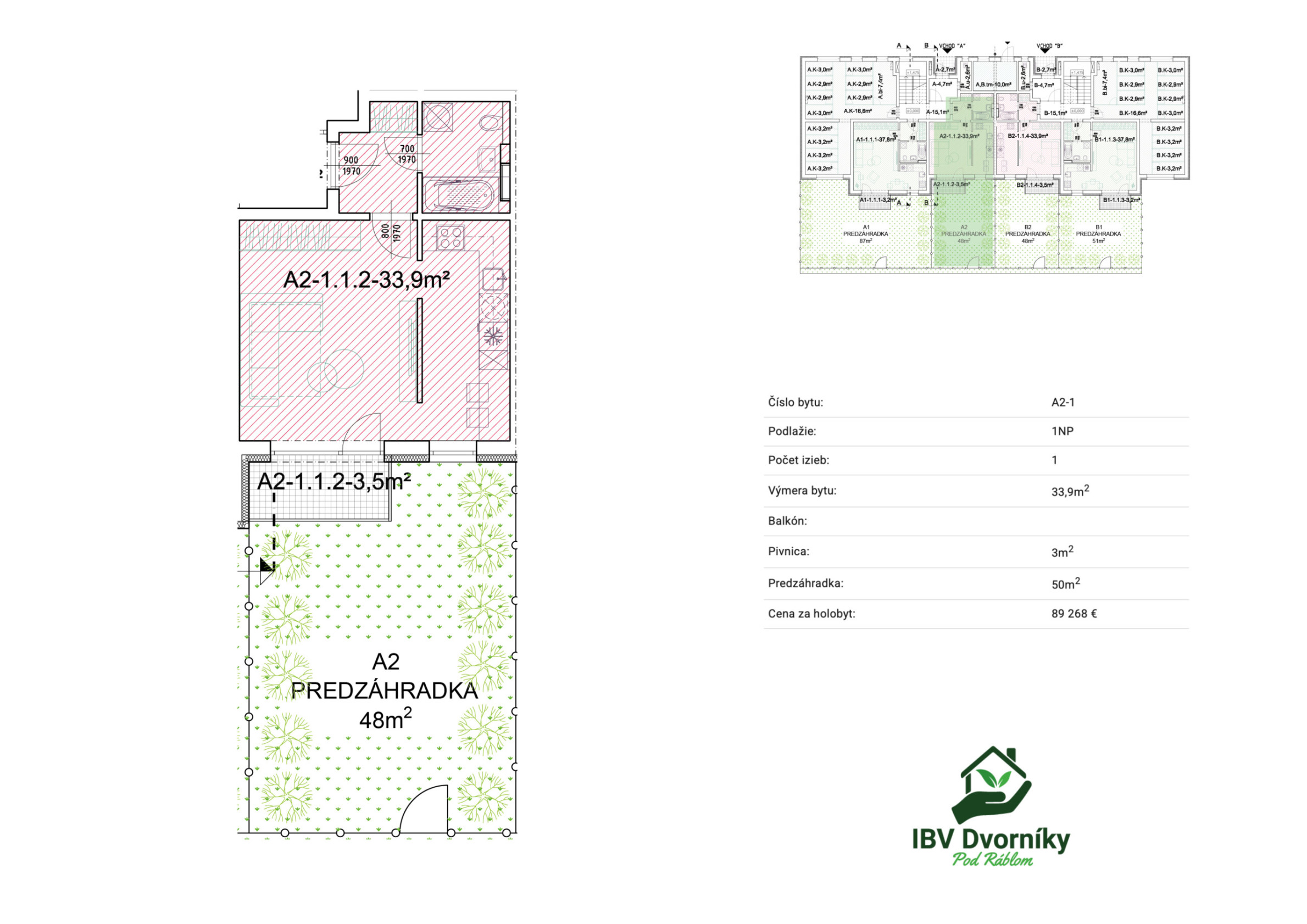 Ponúkame na predaj 1-izbový byt s predzáhradkou, nachádzajúci sa na 1. nadzemnom podlaží (1NP) v modernom bytovom dome. Byt je súčasťou kvalitného rezidenčného projektu a je ideálnou voľbou na vlastné bývanie aj ako investícia na prenájom.
