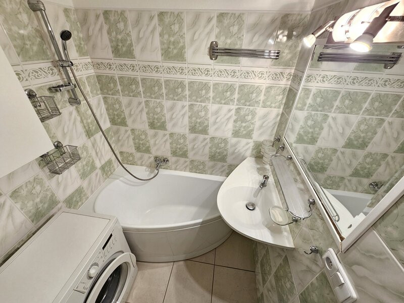 - Kúpeľňa s vaňou a umývadlom, priestor na práčku
