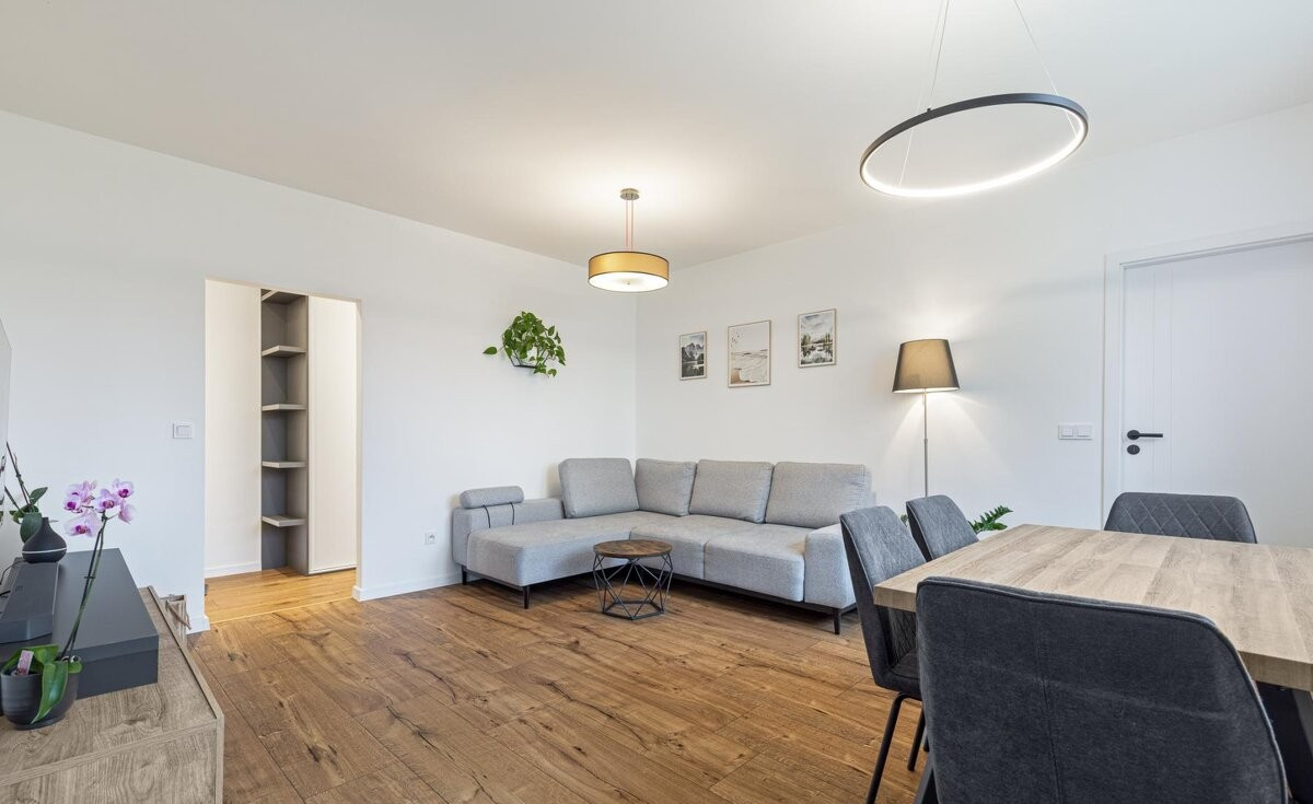 - obývačka s novou sedačkou a moderným nábytkom
