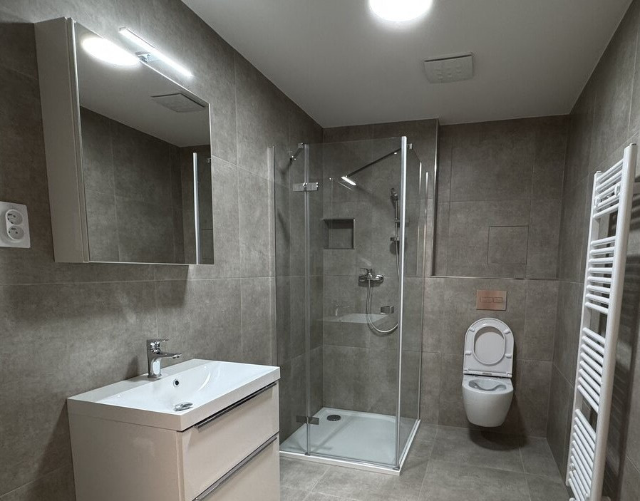 - kúpeľňa so sprchovou a práčkou