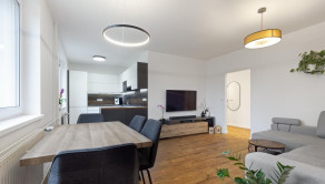- priestranná obývacia izba prepojená s kuchyňou