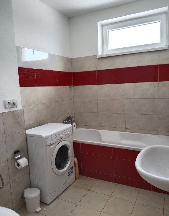 Chodba má veľkú vstavanú skriňu, kúpelňa vaňu.
