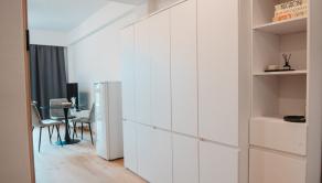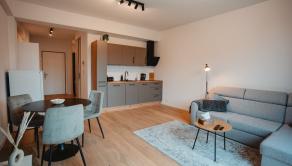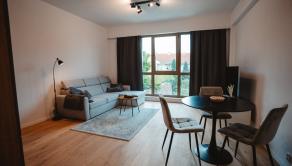 Byt pozostáva z obývacej izby prepojenej s kuchyňou, samostatnej spálne, kúpeľne s WC a vstupnej chodby. Prenajíma sa kompletne zariadený nábytkom aj spotrebičmi.