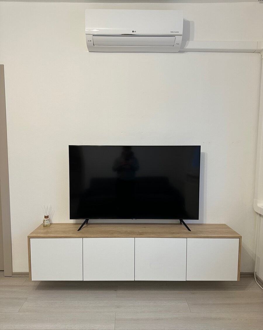 plávajúca podlaha, vstavané skrine množstvo úložného priestoru, nábytok, posteľ, TV, stôl,stoličky, klimatizácia...