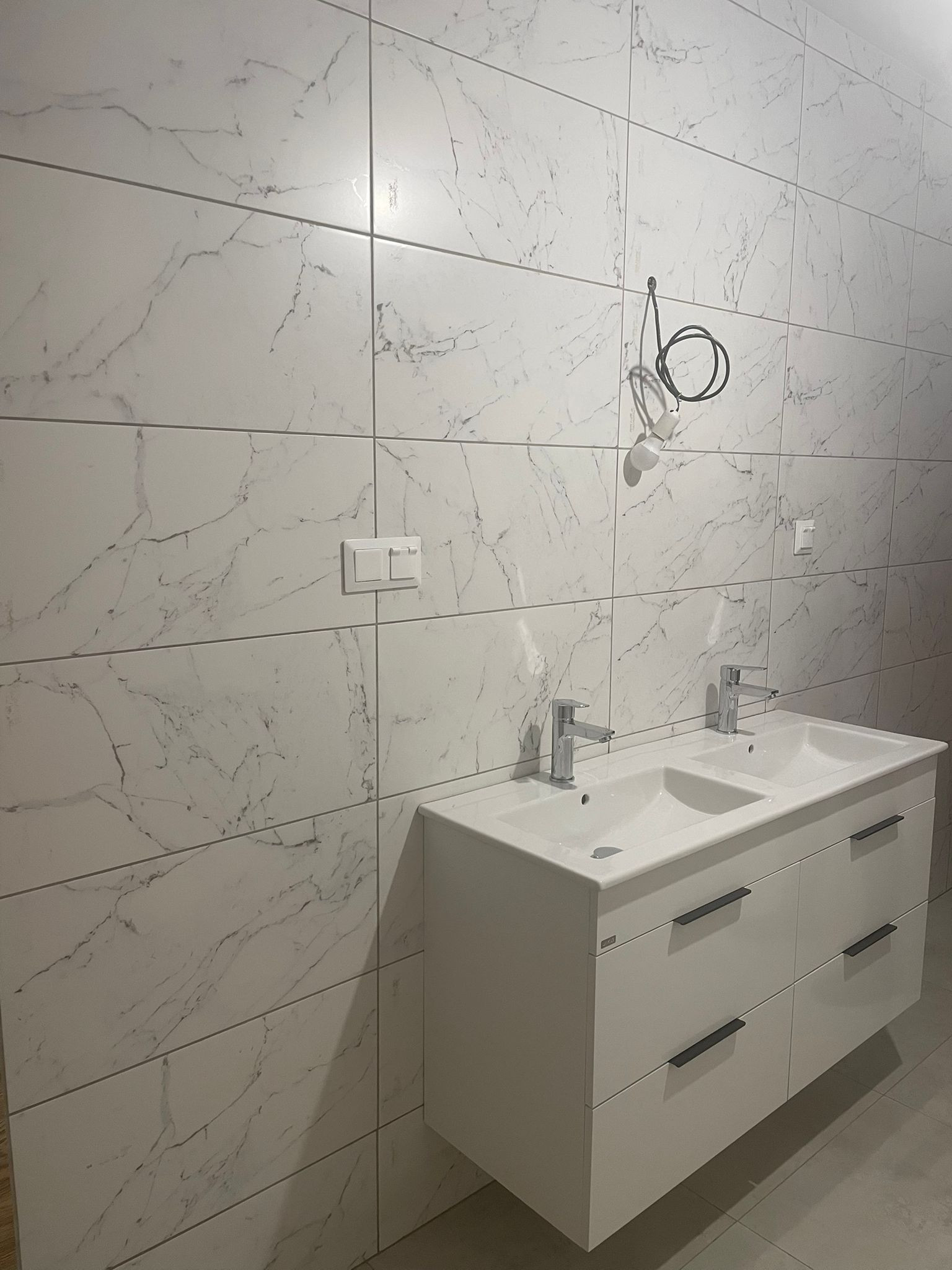 Už pri vstupe do domu vás privíta veľkorysá vstupná chodba, ktorá okamžite navodí pocit domova a elegancie. Nachádza sa tu samostatné WC, praktické pre návštevy aj každodenné fungovanie domácnosti. Druhé WC je súčasťou kúpeľne, kde máte na výber sprchový kút aj vaňu – podľa toho, či sa ponáhľate, alebo si chcete dopriať zaslúžený relax.