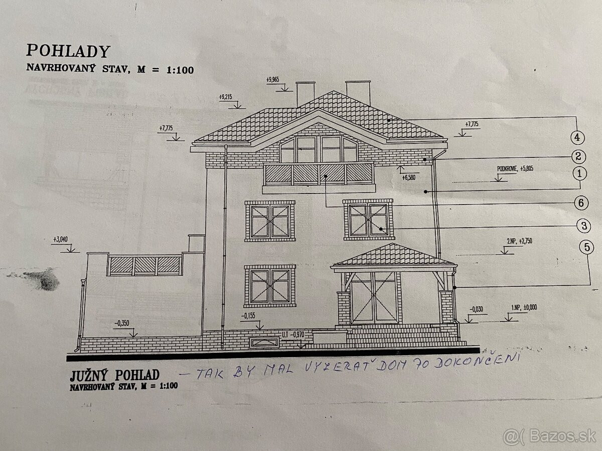 2.nadzemné podlažie: 3 izby, kúpeľňa s WC, balkónové dvere s prípravou na terasu