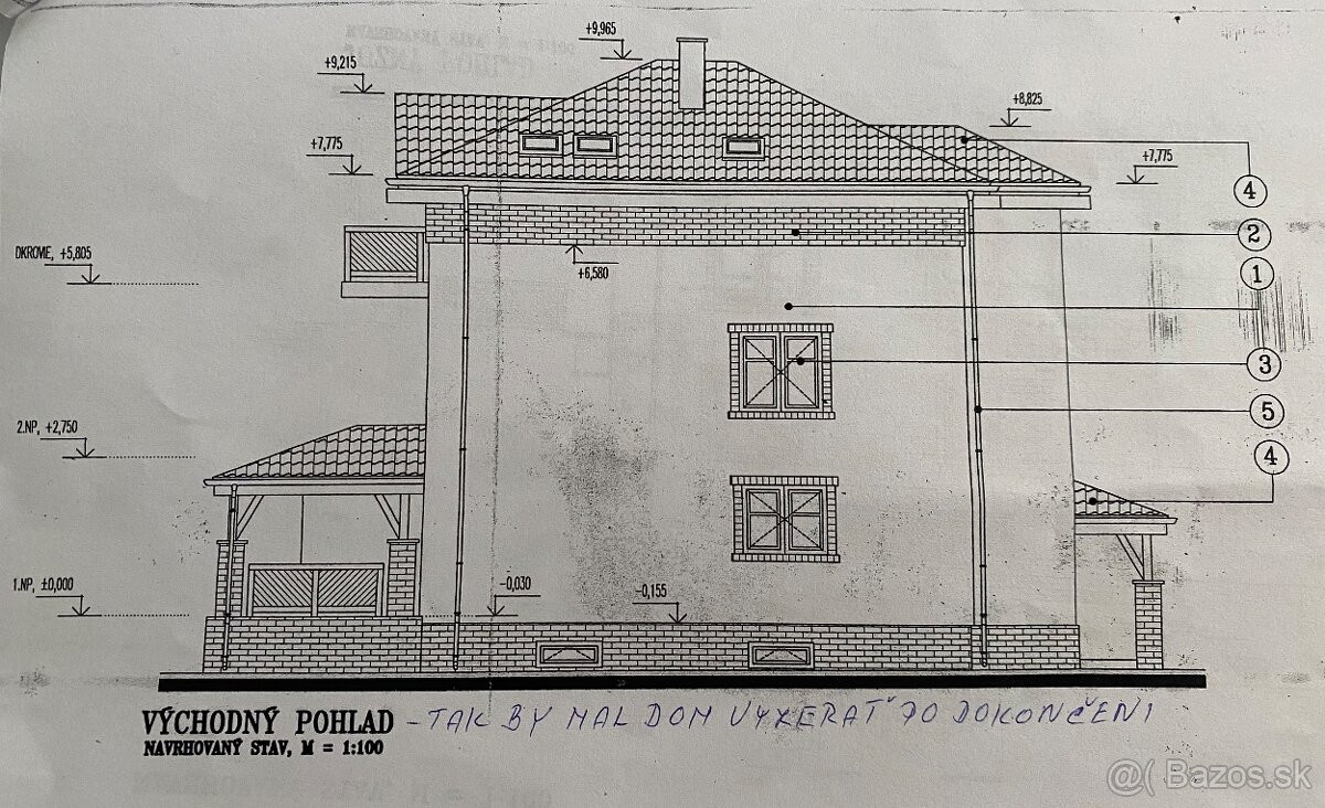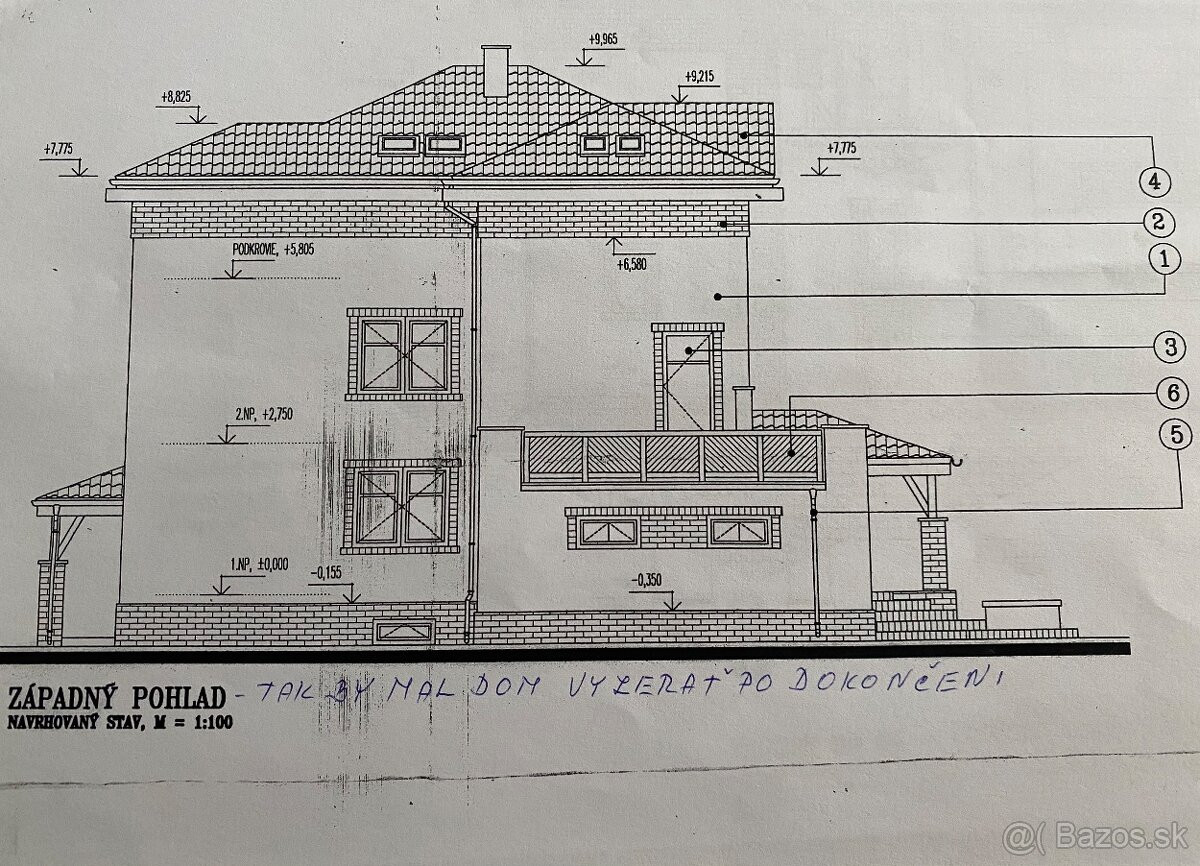 Podkrovie: otvorený priestor, čiastočne zateplený, nové komíny z pálenej tehly, vyvložkované a pripravené na napojenie kotlov