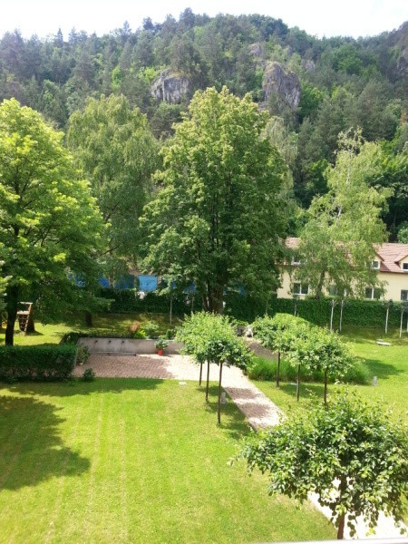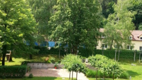 oplotená spoločná záhradka za domom, určená pre obyvateľov