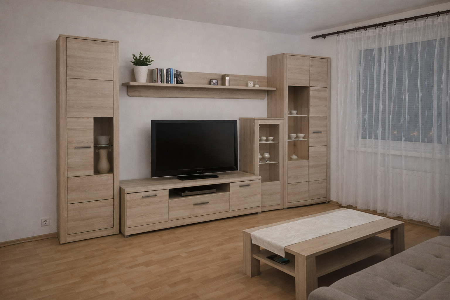 Obývacka a spálna komplet na novo zariadená,bez možnosti zmeny.3 izba je možná zariadiť si podľa vlastných predstav.