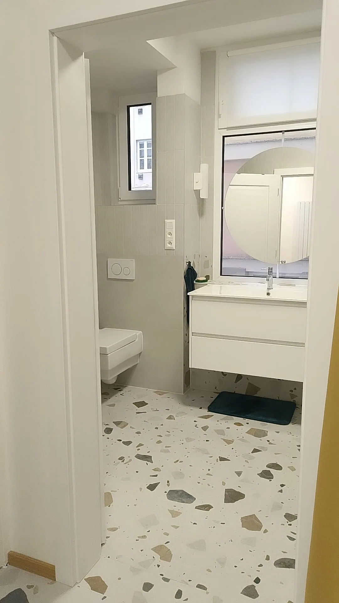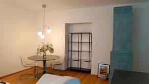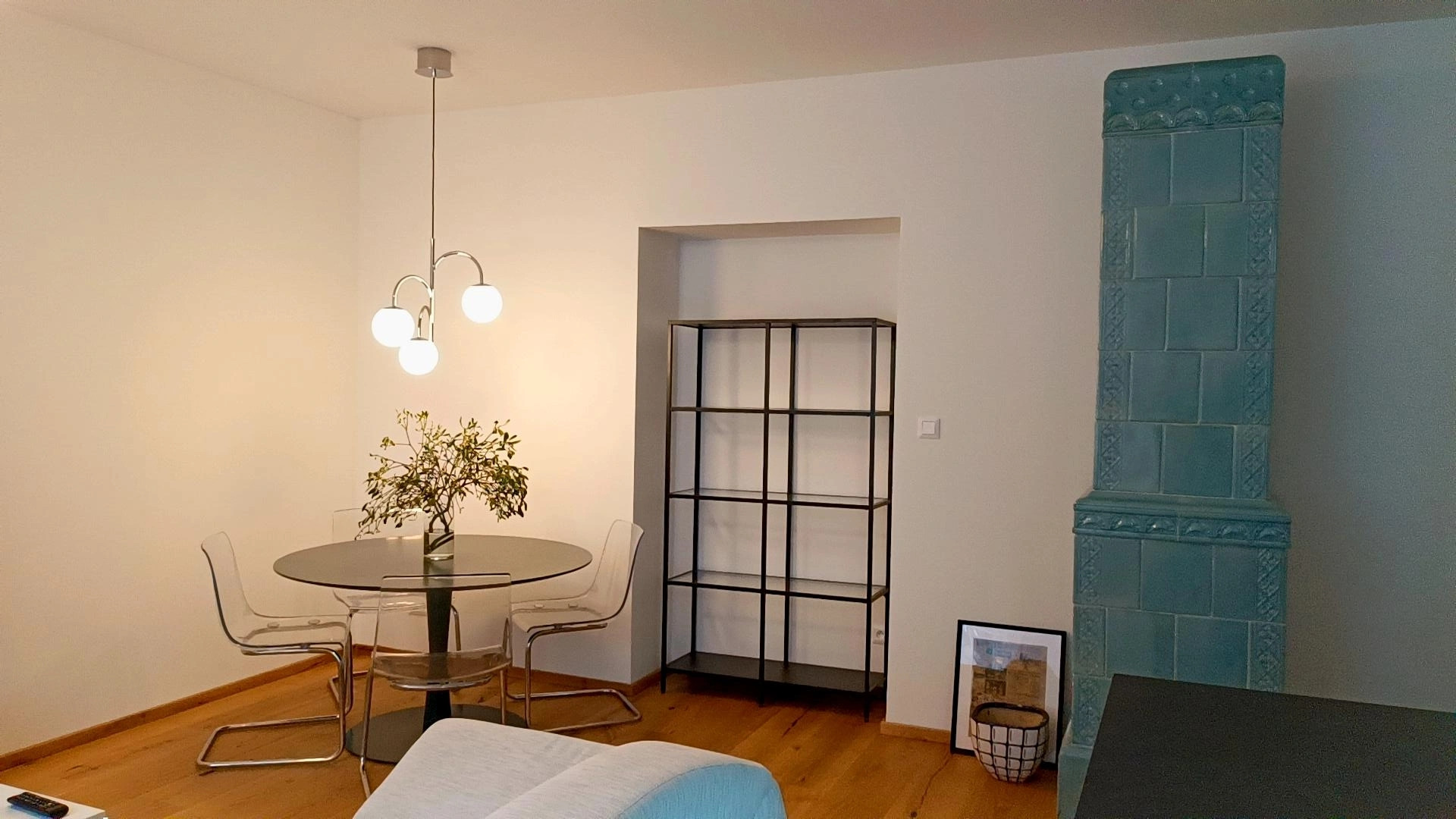 With a total area of 90 m² + 10 m² cellar, the apartment has undergone a complete, high-quality reconstruction in cooperation with an architect. The original layout was redesigned to meet modern living standards while preserving the historical soul of the space.