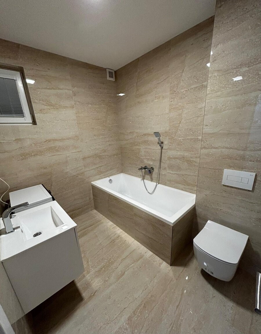 Nová bytová jednotka , podlahy, kúpeľňa s wc, kuchynská linka aj so spotrebičmi, interiérové dvere.