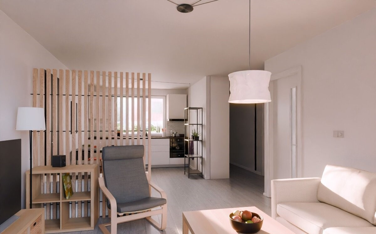 z chodby, kúpeľne, kuchyne a dvoch izieb.