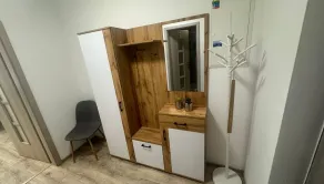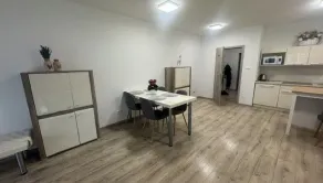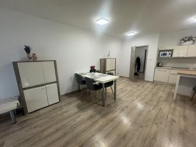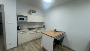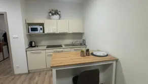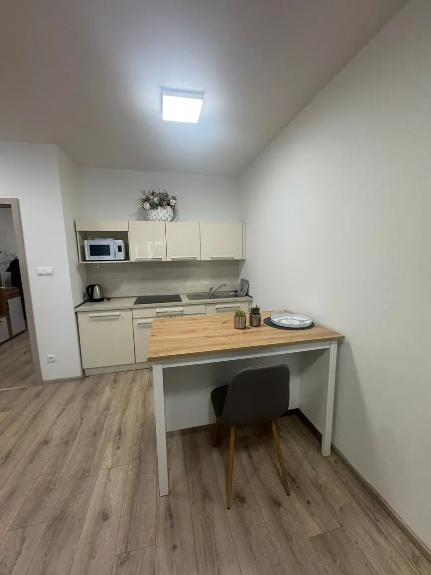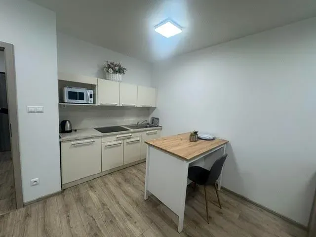 kompletne vybavená kuchyňa, stôl stoličky, pohovka, úložný priestor, pracovný stôl, posteľ (pri prevzatí bude vo výbave)