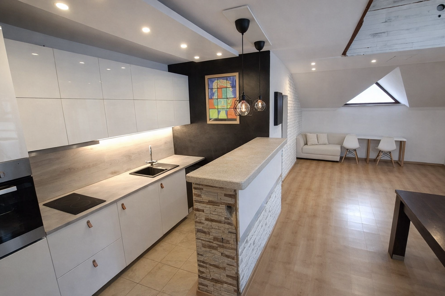 -samostatná kuchyňa – nová kuchynská linka so vstavanou rúrou, zabudovanou chladničkou a umývačkou riadu