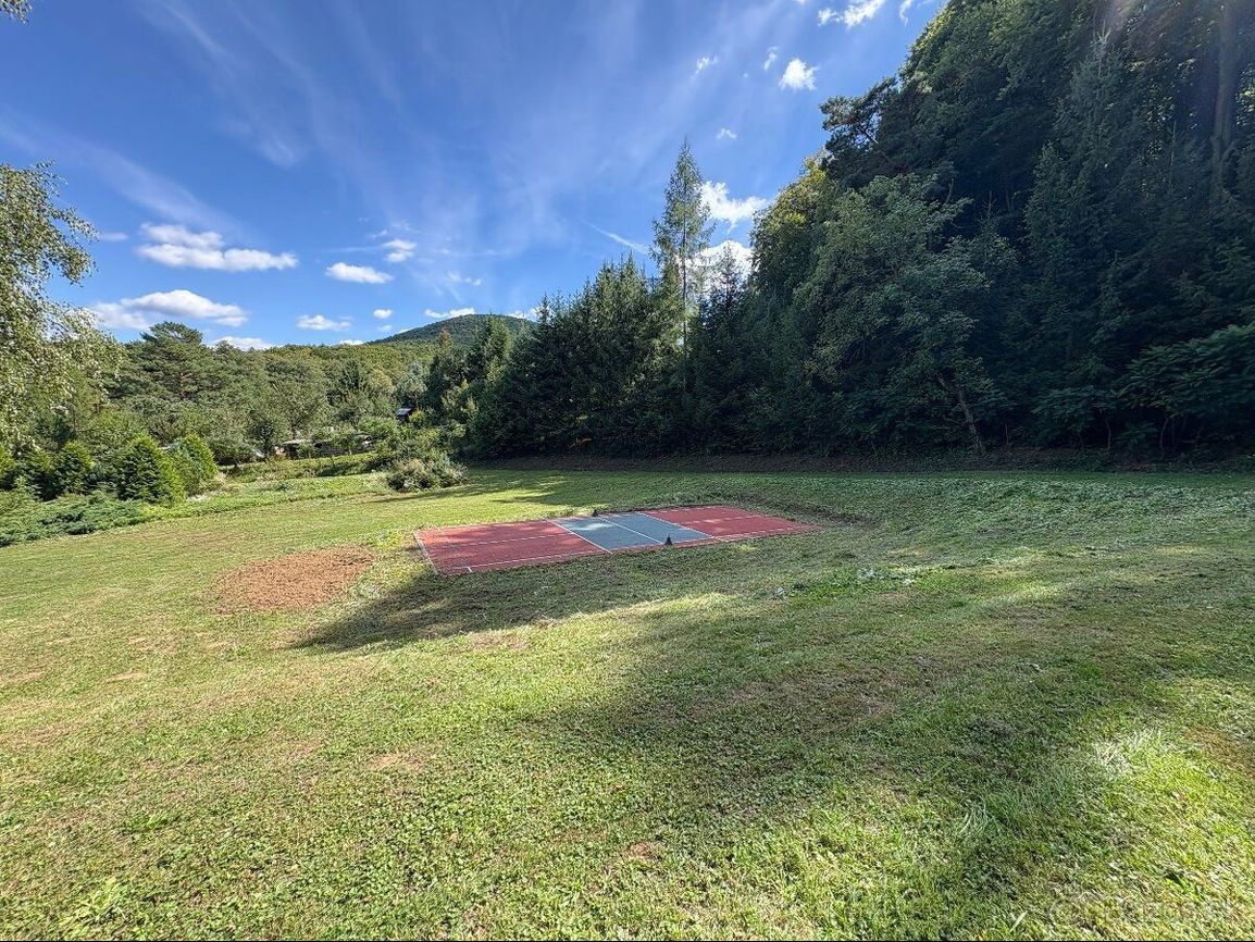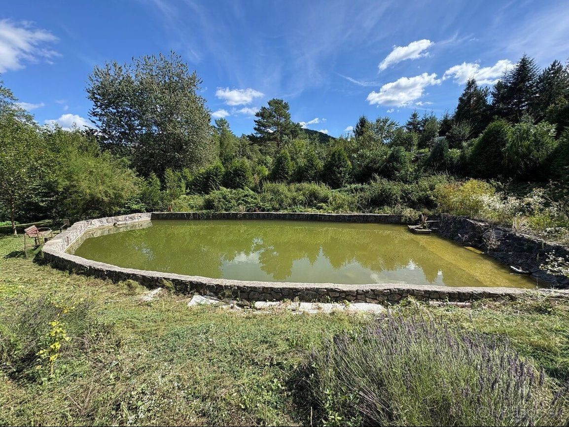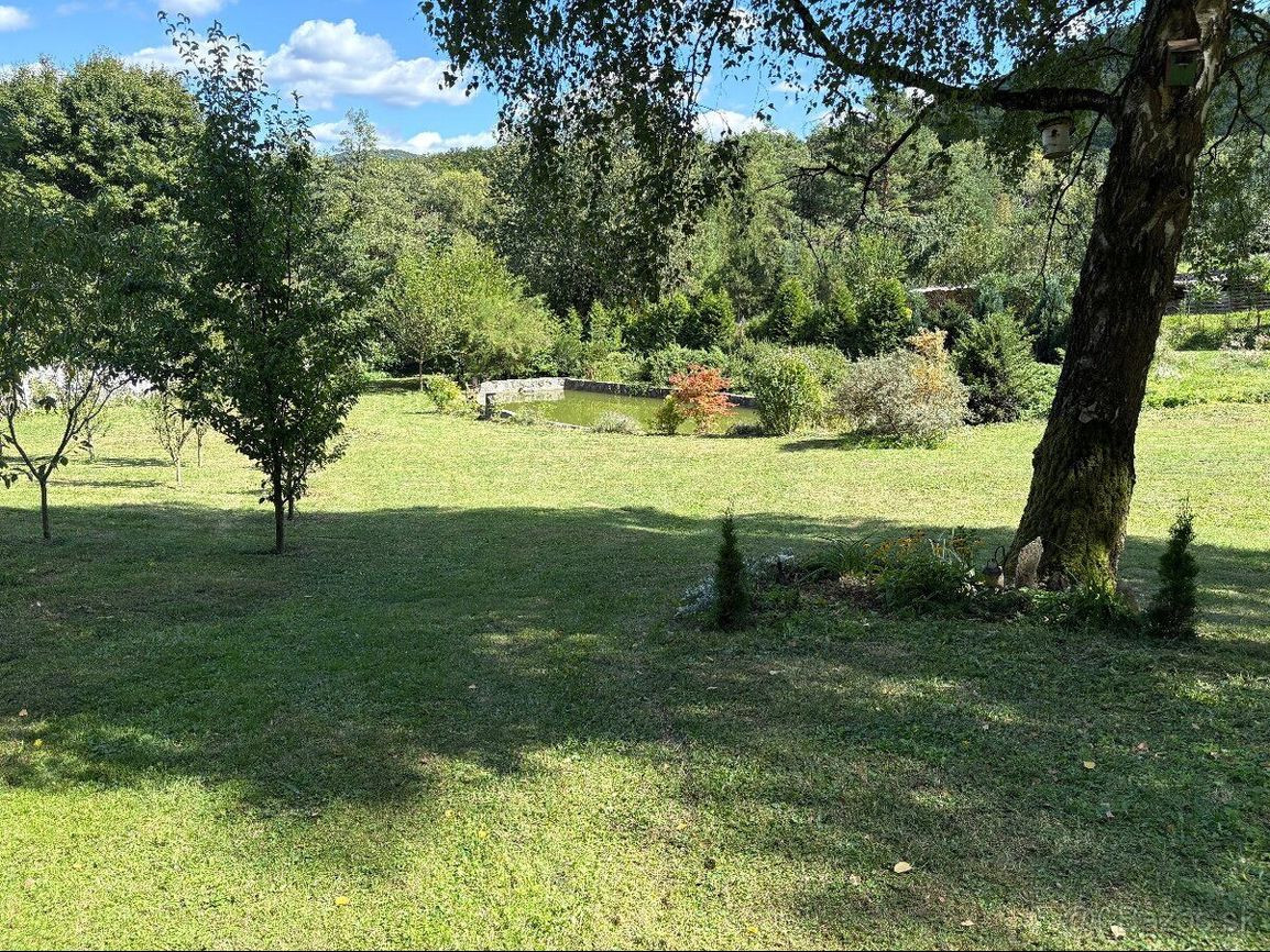 + veľký rybník plný kaprov, pričom voda vyviera priamo na pozemku,