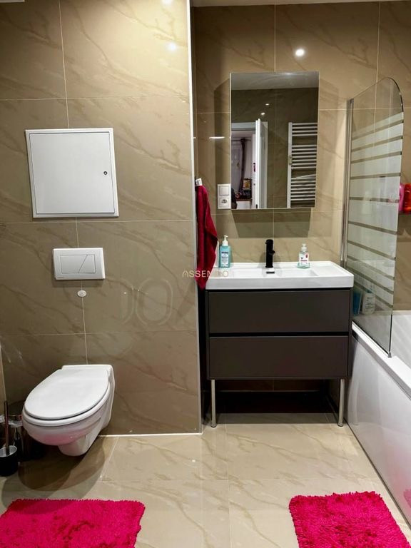 - nadštandardne rozmerná kúpeľňa v modernom prevedení – nová dlažba, obklady, sanita, práčka