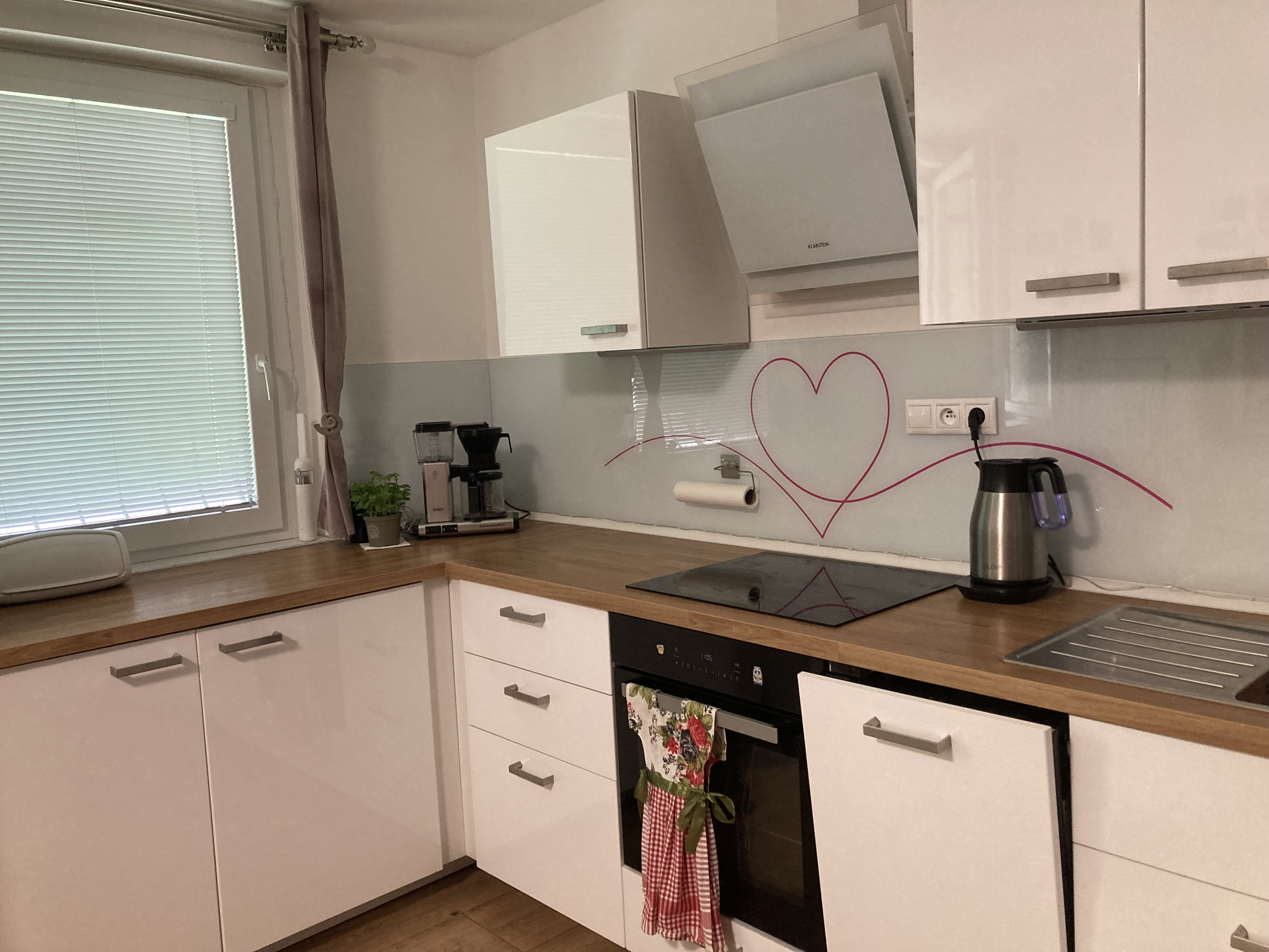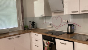 - kompletne vybavená kuchynská linka na mieru: chladnička s mrazničkou, elektrická rúra, elektrická varná doska, digestor, umývačka riadu