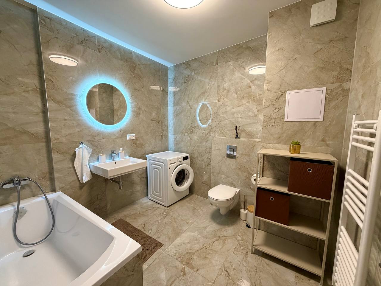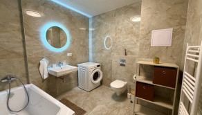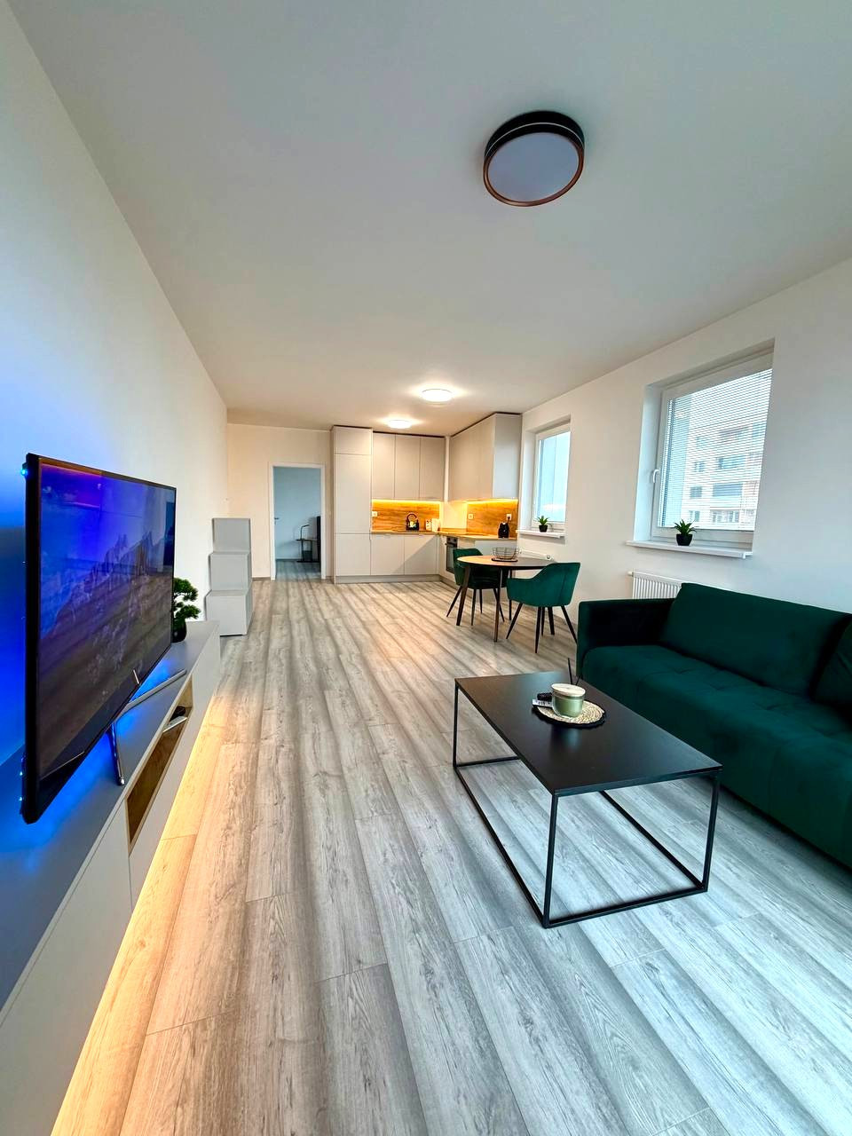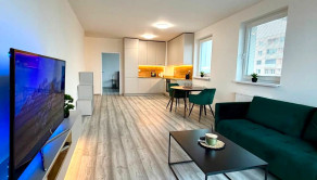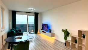 Ide o modernú novostavbu spĺňajúcu najnovšie štandardy bývania – kvalitná a funkčná dispozícia, výťah, kamerový systém a parkovanie v podzemnej garáži.