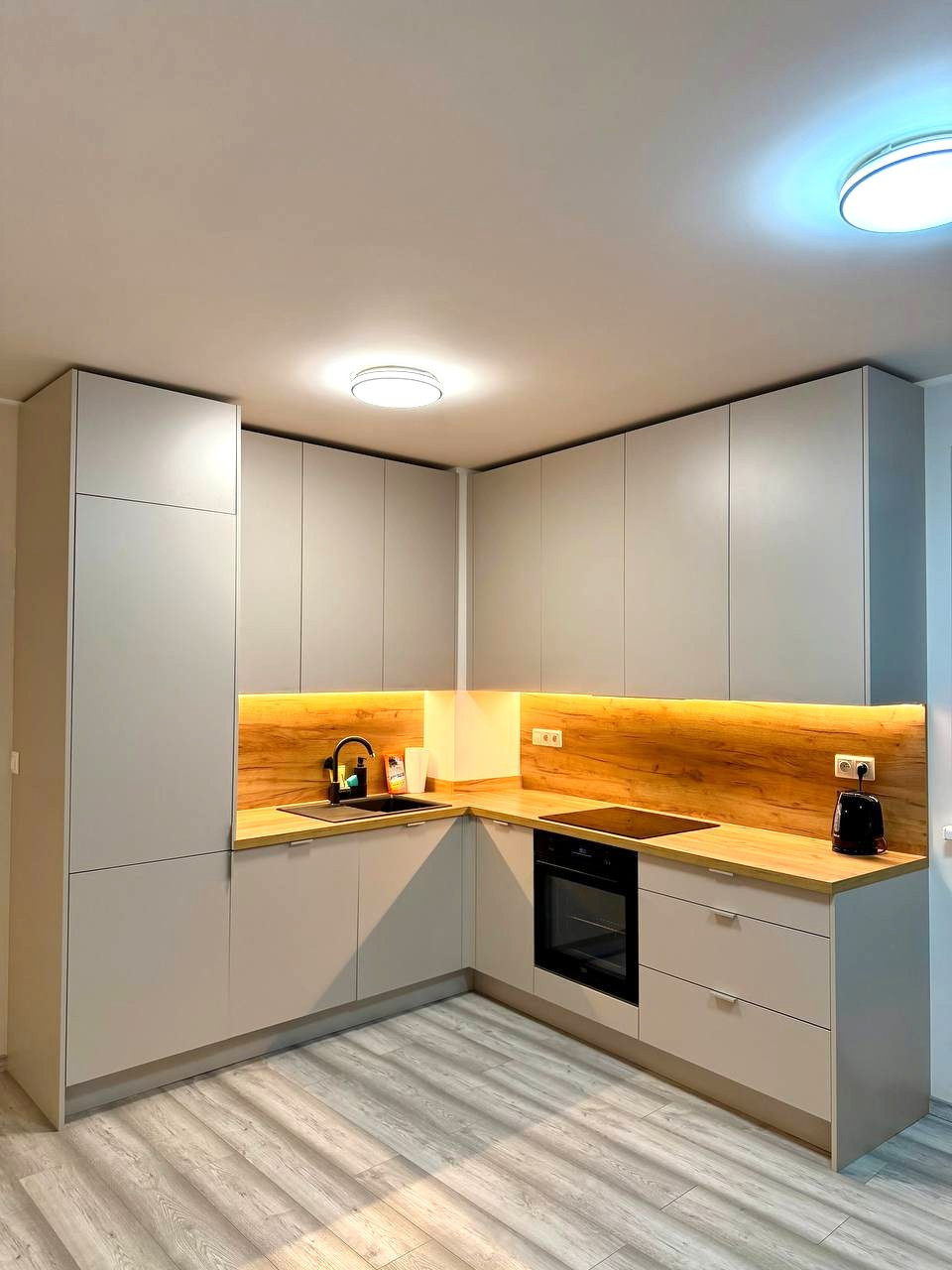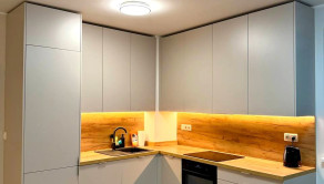 Celý interiér bytu je kompletne zariadený na mieru kvalitnou firmou iKuchyne.sk.