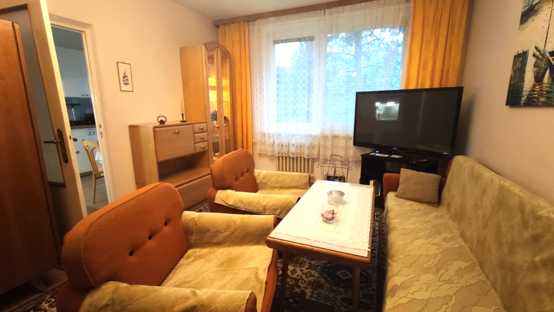 Byt má samostatnú spálňu, obývaciu miestnosť, zrekonštruovanú kuchyňu a kúpeľňu s vaňou, oddelené WC a špajzu.