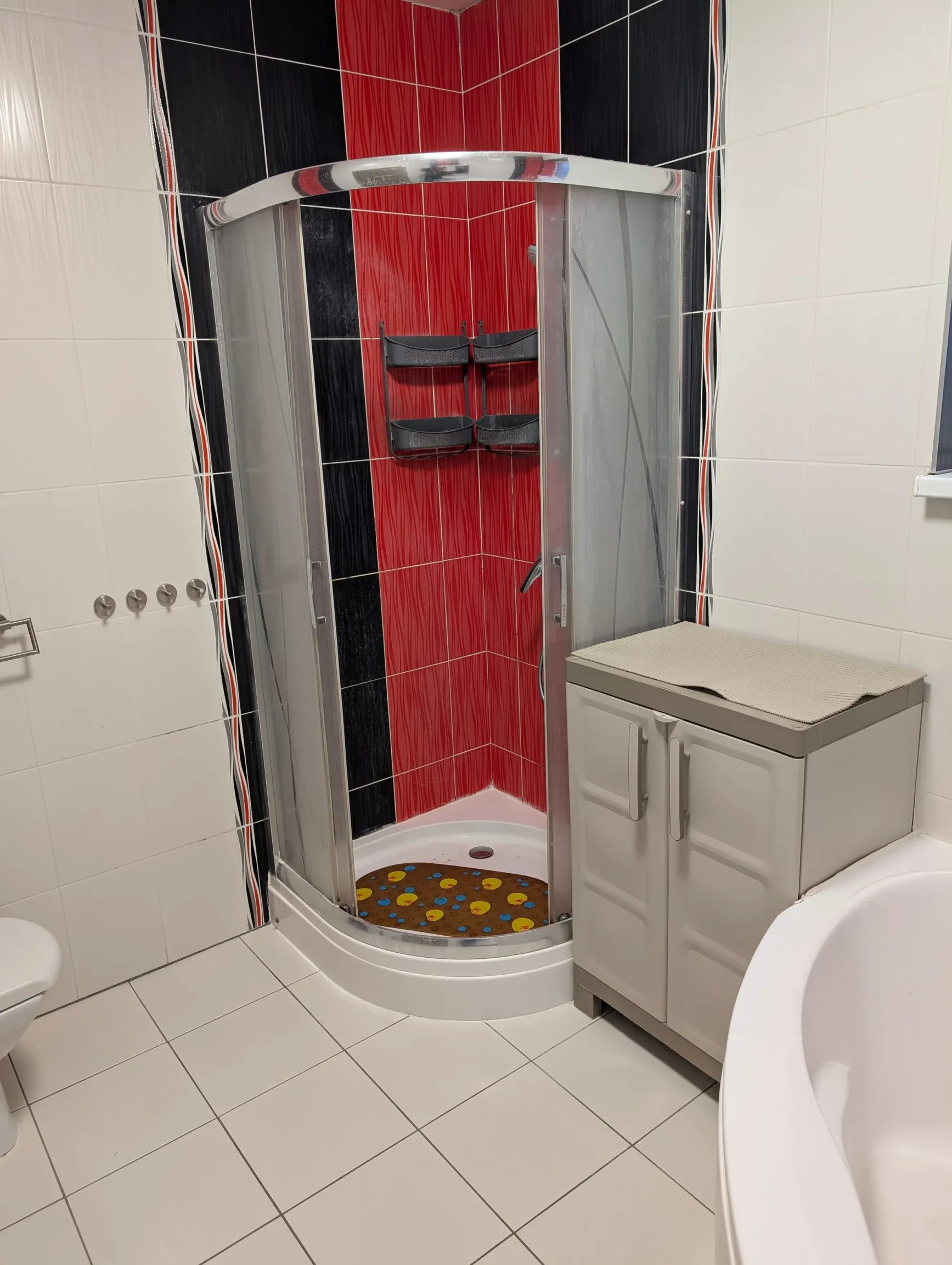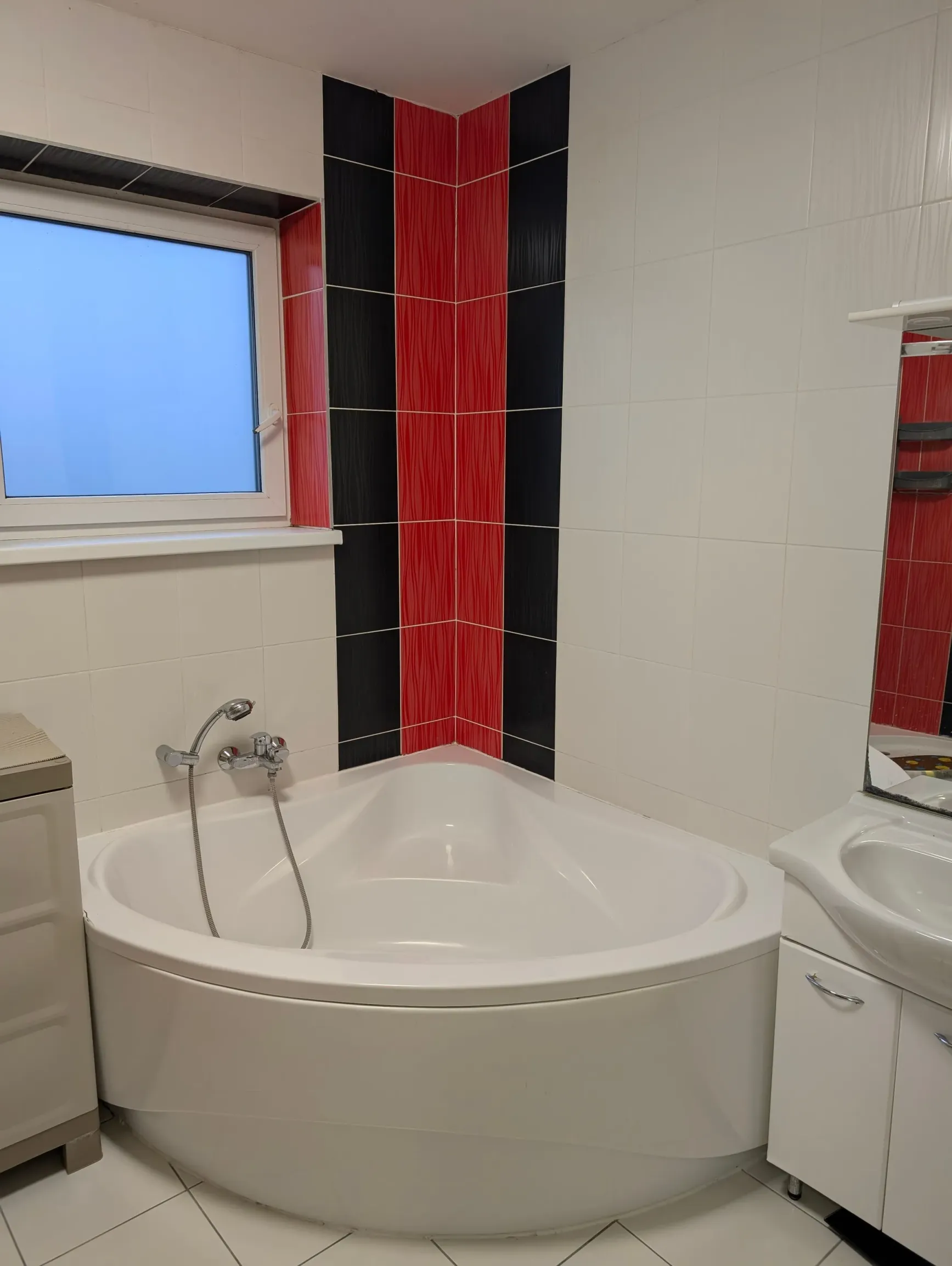 - Kúpeľňa s vaňou sprchový kút, umývadlo a wc