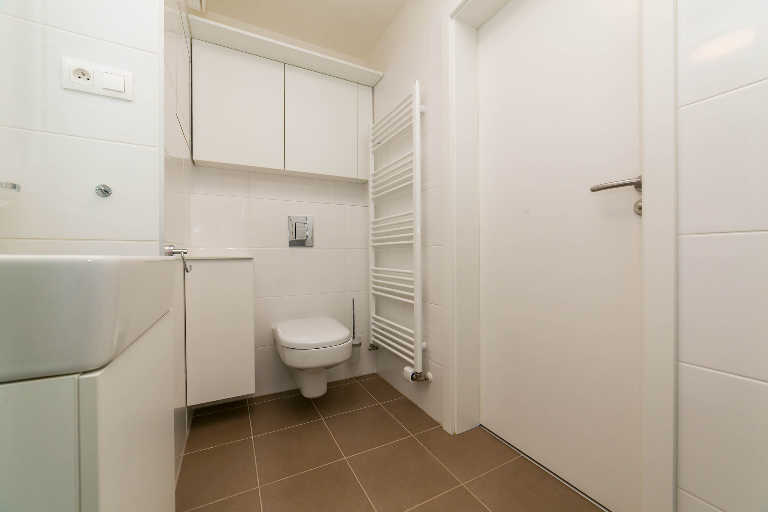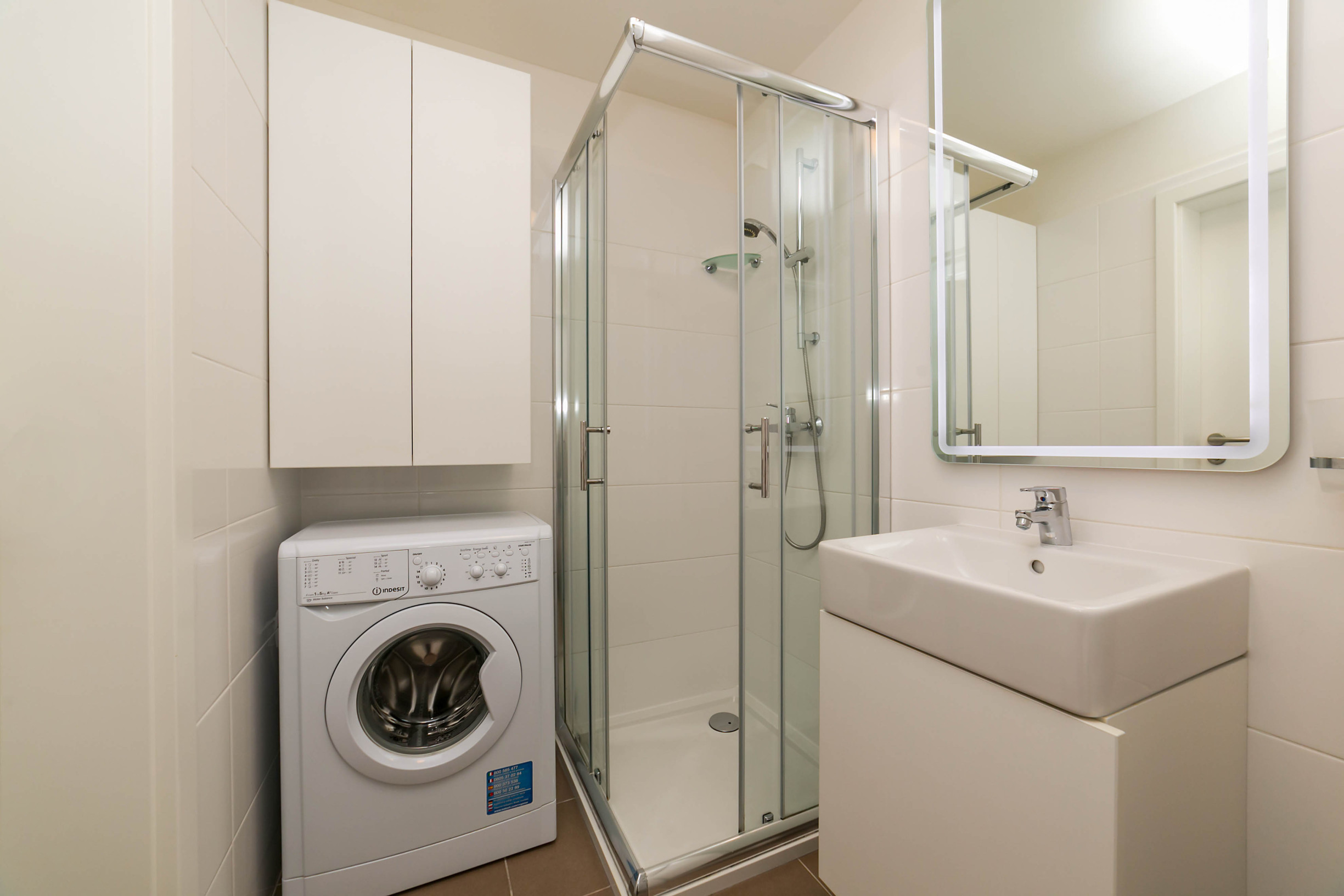 -kúpeľňa so sprchovým kútom a práčkou