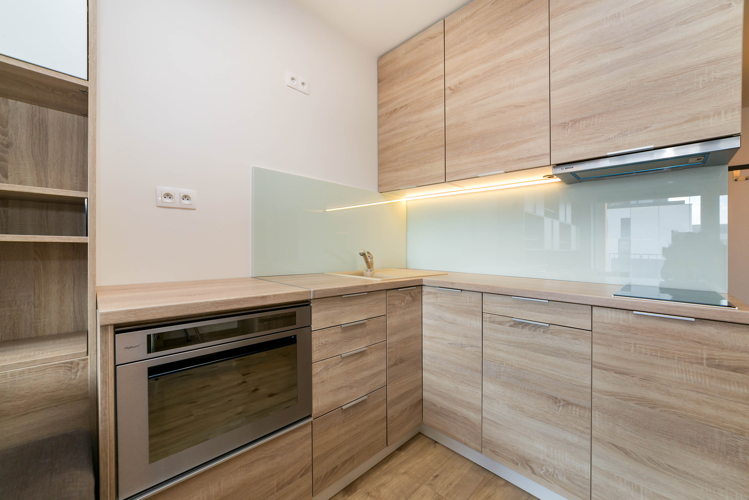 -plne vybavená kuchynská linka so vstavanými spotrebičmi