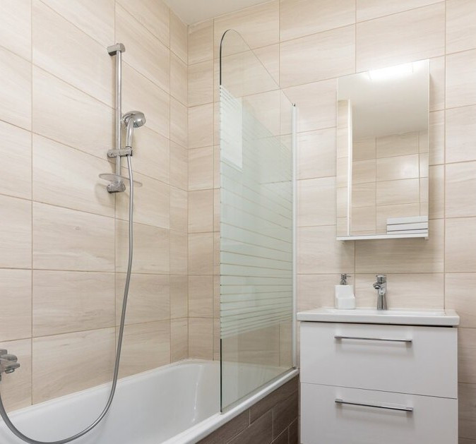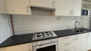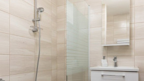 - revitalizovaná kúpeľňa s osadeným sprchovým kútom a keramickým obkladom. Výmenou vane za sprchovací kút si tu našla priestor práčka so sušičkou.