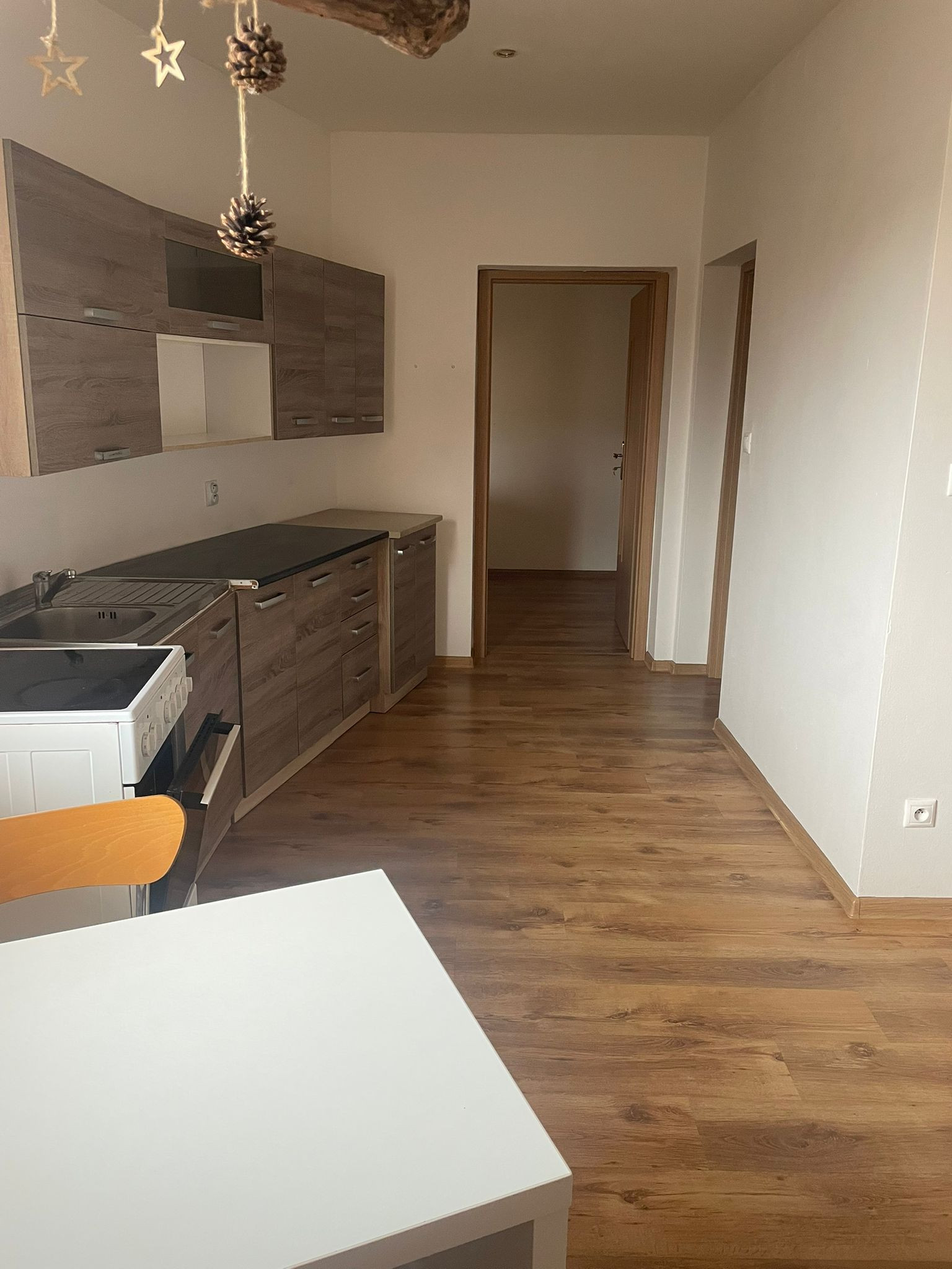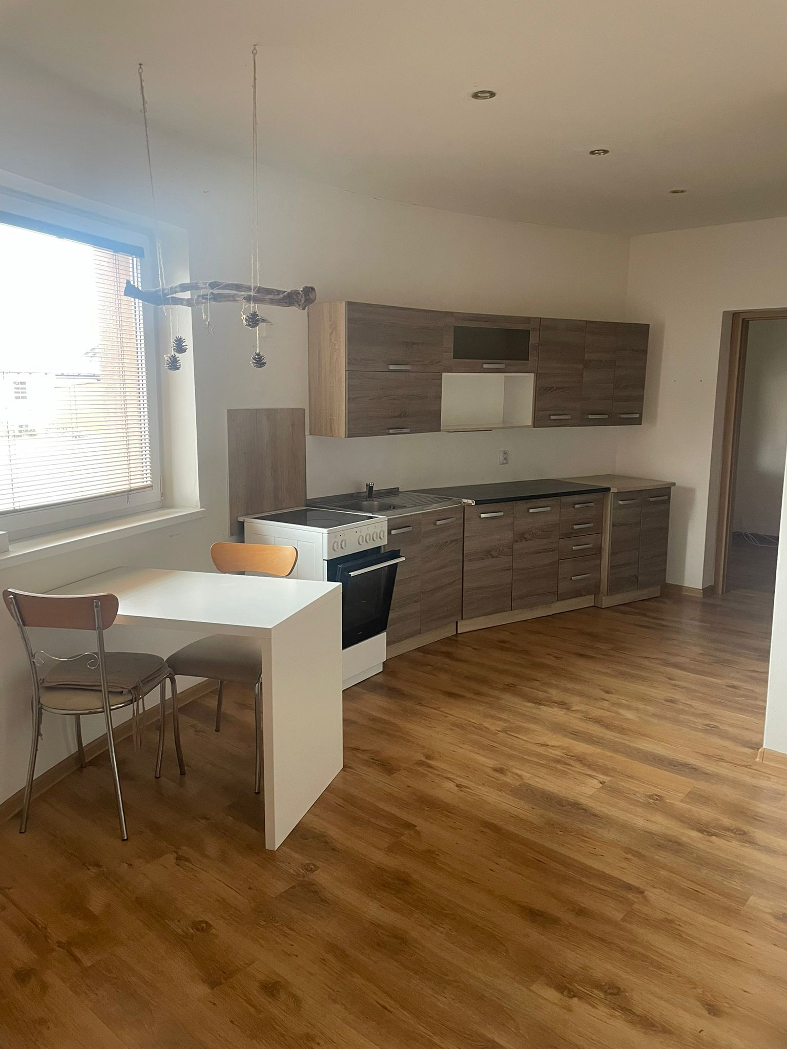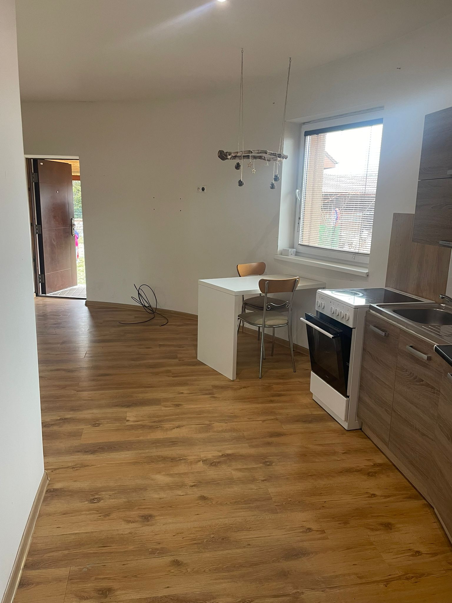 Byt disponuje dvomi samostatnými izbami a priestrannou obývačkou prepojenou s kuchyňou, kde môžete spoločne tráviť čas. Samozrejmosťou je kúpeľňa so sprchovým kútom a WC.