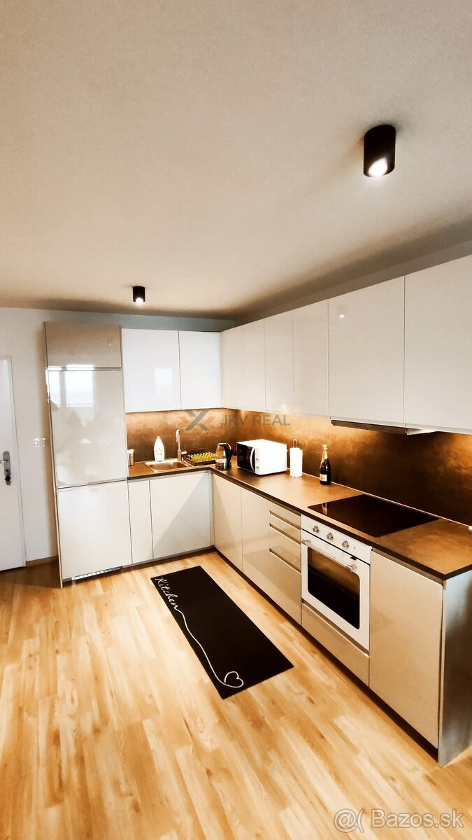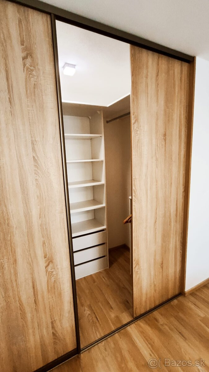 plastové okná, plávajúca podlaha, zariadená kuchyňa, vstavané skrine na mieru, sprchovací kút.