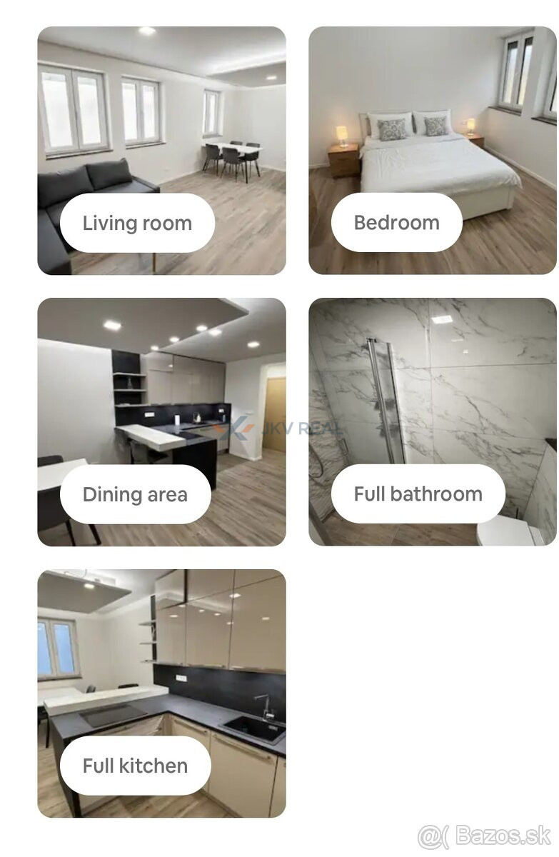 plastové okná, plávajúca podlaha, jedálenský stôl, manželská posteľ, sprchovací kút, umývadlo.