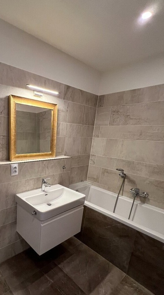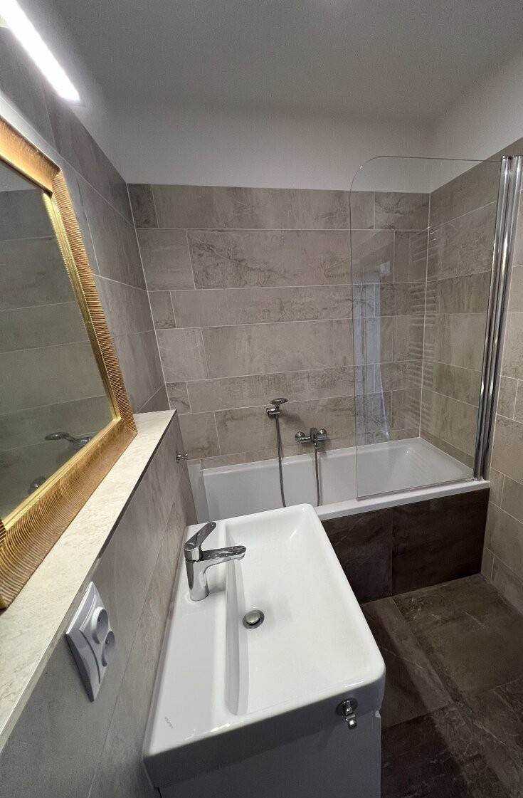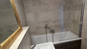- priestranná kúpeľňa s vaňou, umývadlom, práčkou a toaletou
