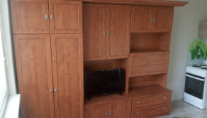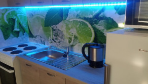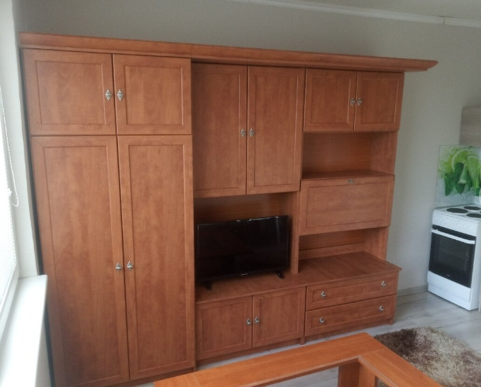 Je veľmi vkusne zariadená nábytkom, rozkladacím gaučom, kuchyňou a veľkým množstvom úložného priestoru. V garzónke sú aj ele. spotrebiče (práčka, chladnička, mikrovlnka, sporák s rúrou a televízor).