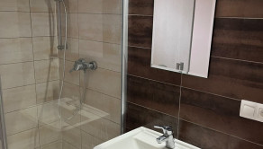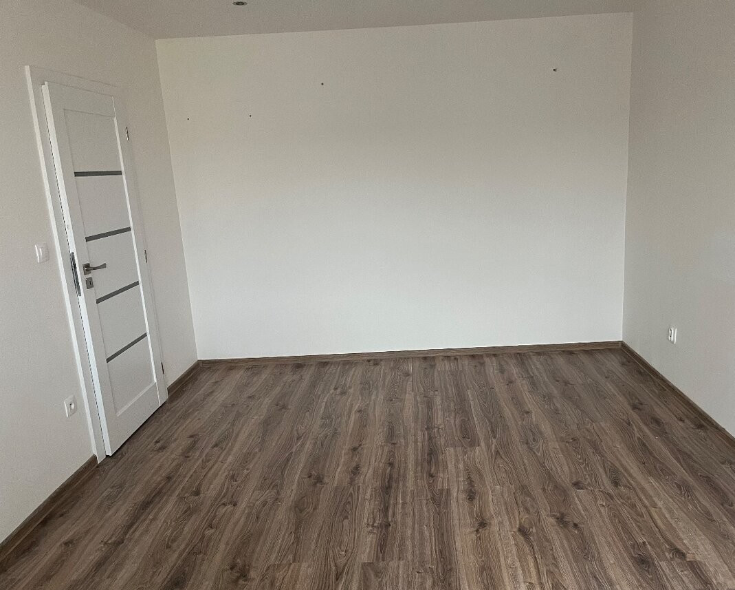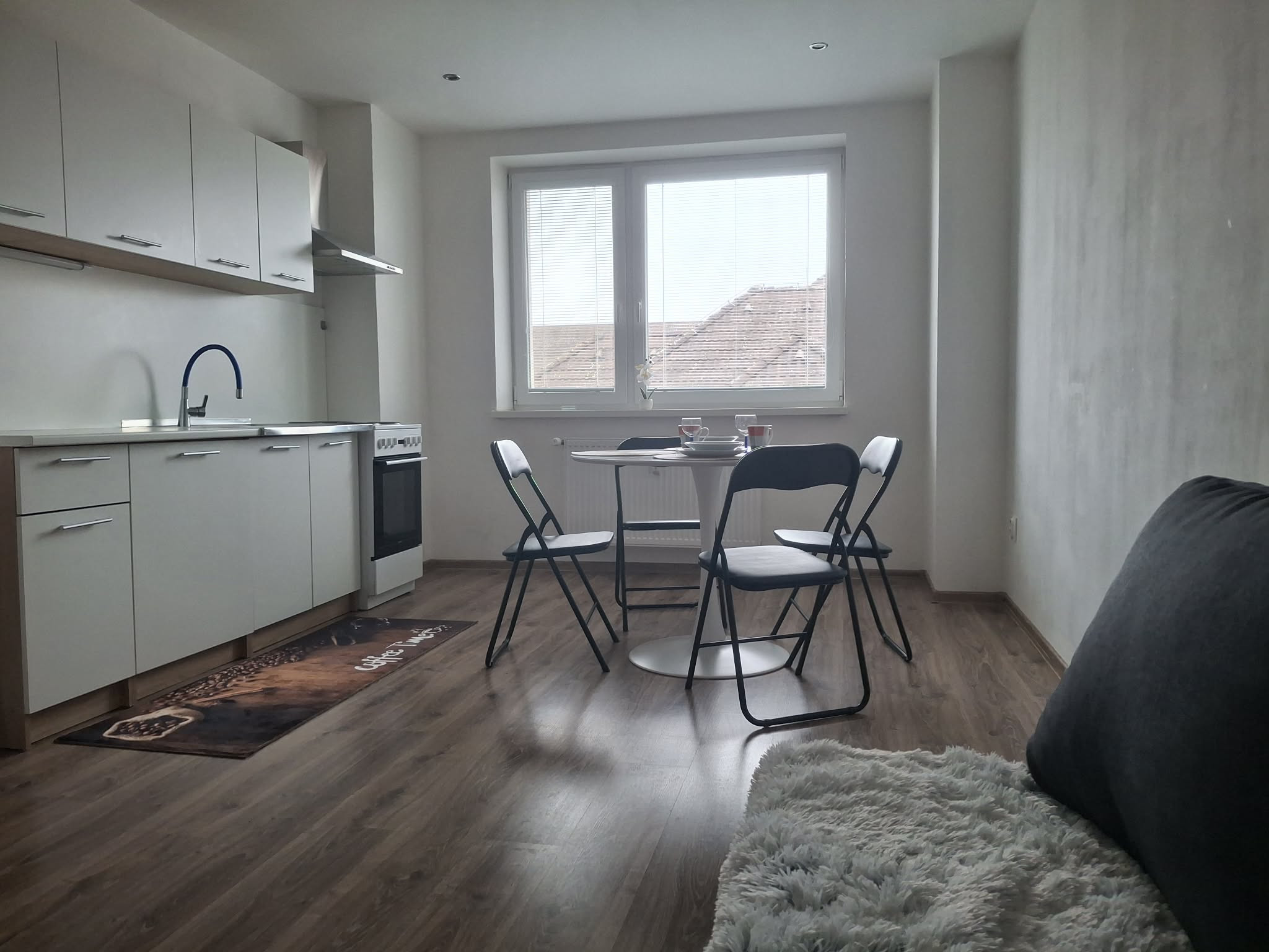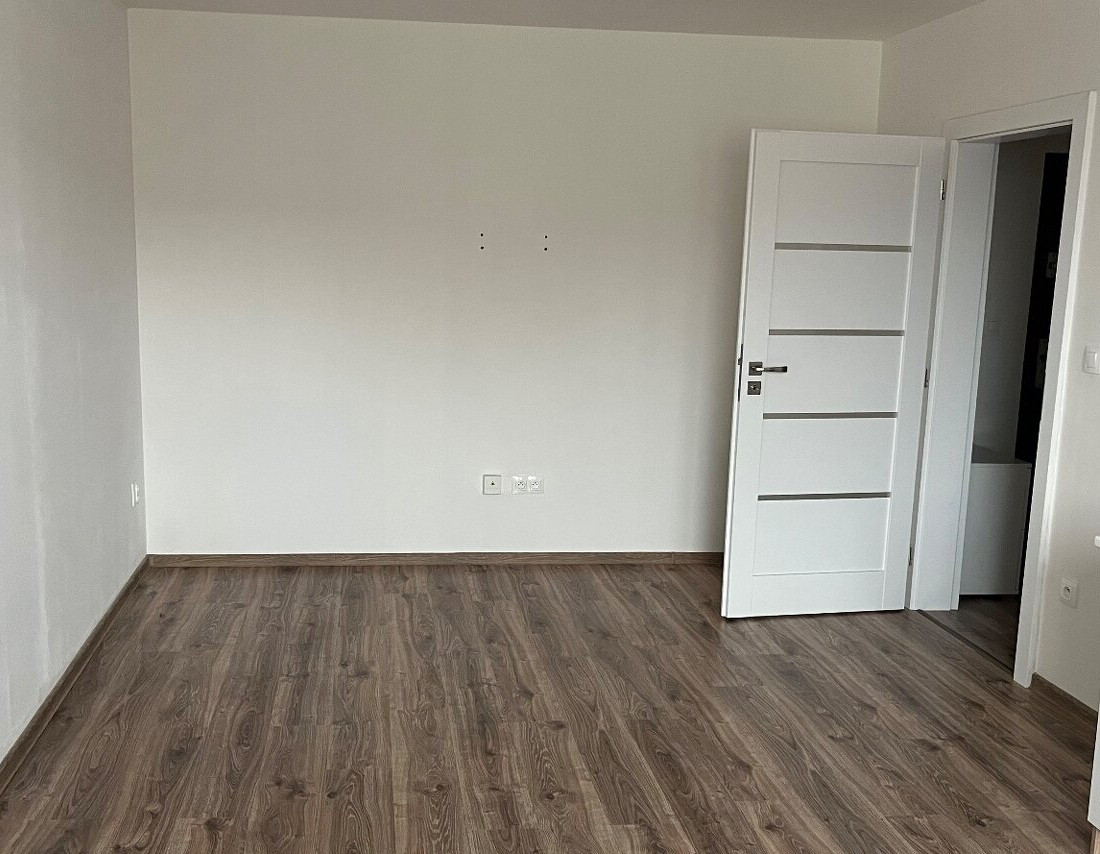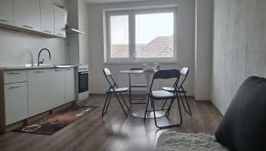 Pozostáva z priestrannej vstupnej chodby, obývacej izby s kuchyňou, spálne, priestranná kúpeľňa s WC a oknom. K bytu patrí aj lógia, pivnica a parkovacie miesto.