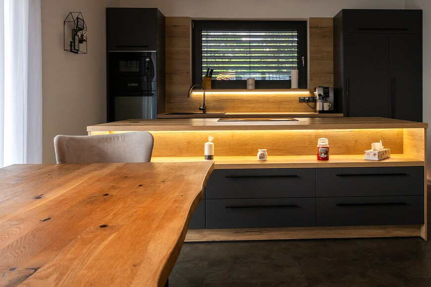 - Priestranná obývačka spojená s kuchyňou a jedálňou