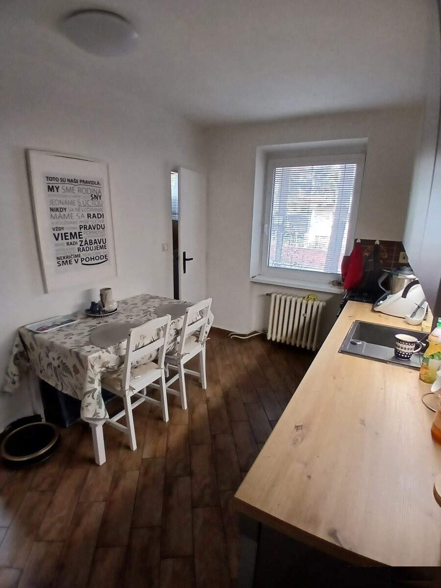 Dispozične je byt veľmi praktický – jedna izba je priechodná so spálňou aj s kuchyňou, čo z nej robí ideálne miesto na pracovňu, domácu kanceláriu alebo pohodlnú prácu z domu.